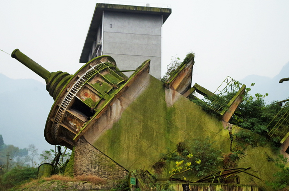 什邡穿心店地震遗址,是中国保存的最为完好的工业地震遗址,保留了宏达化工厂遭地震破坏的惨烈原貌。 5.12汶川地震中,地处龙门山脉中段的什邡市遭受了百年不遇的劫难。一进入园区内,一座高近30米倒塌的长满青苔的干燥塔映入眼帘。在一栋已经夷为平地的长满杂草的废墟的面前,解说员讲述了六年前的那次地震中一些普通人的不普通的故事。这曾经是一栋六层高的宿舍楼,里面的员工在地震中全部遇难。同学们怀着沉重的心情走完了全程,来自园艺91pron