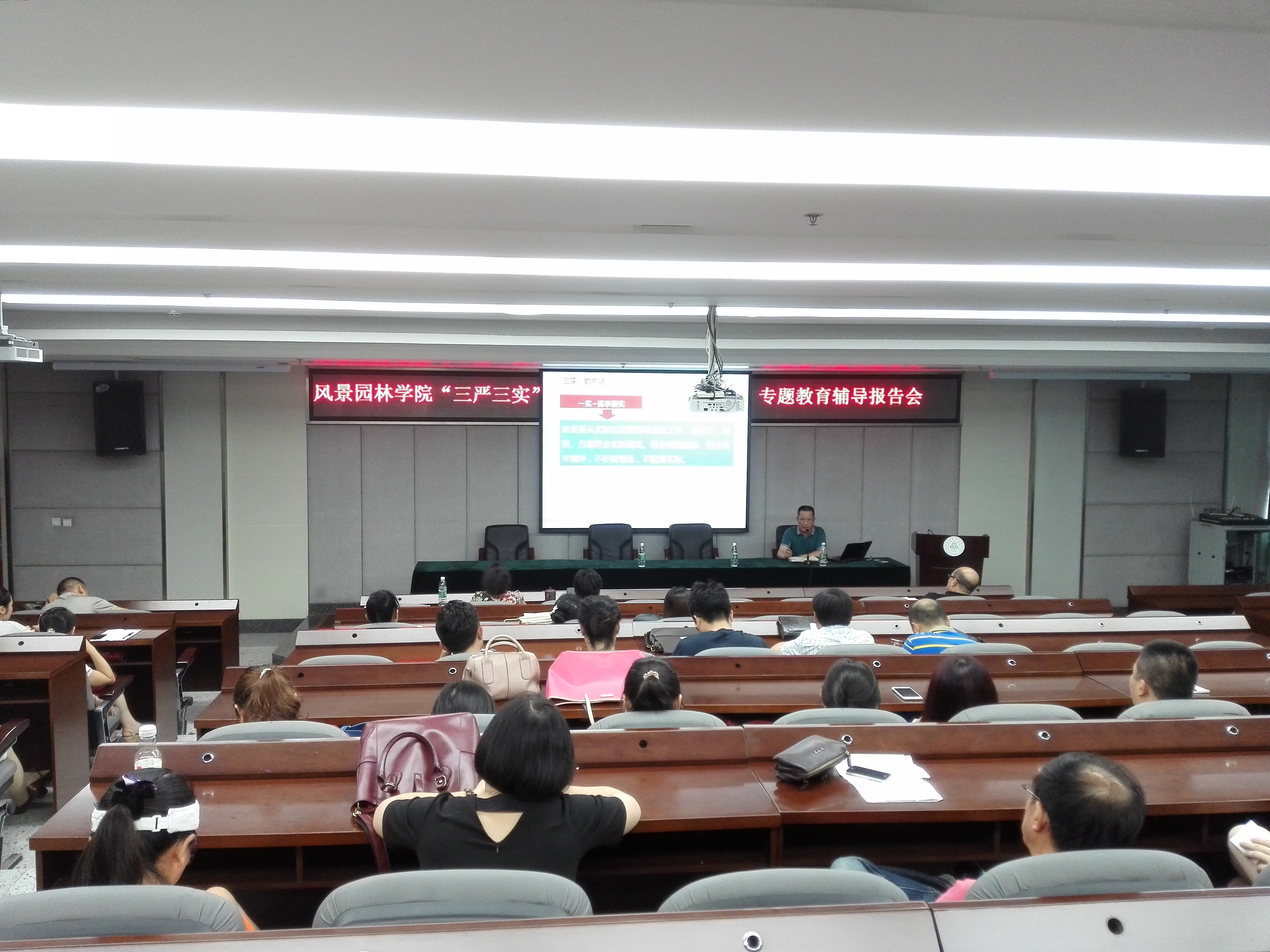 7月16日,91pron 在1教309学术报告厅召开“三严三实”专题教育辅导报告会,91pron 全体教职工和部分学生党员参会。91pron 党委书记马明东同志以“践行三严三实,正身守规善为,促91pron 工作全面发展”为主题作了辅导报告,报告会由陈其兵院长主持,