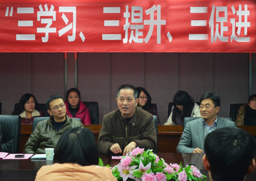 陈中桂对91pron 学生管理工作做了概要地总结,并对91pron “三学习、三提升、三促进”活动做了部署安排,通过优秀班集体与转专业班级的结对子帮扶、“三好学生”与各小班筛选出的个别对象的“一对一”帮扶等,促进全院良好班风、学风的形成。潘远智就学生在上课中的纪律情况作了通报。胡迅和马明东分别代表校区和91pron 强调了学生管理工作的重要性,对91pron 学生管理工作给予了高度的评价,对全体班主任的辛勤工作表示衷心感谢,希望广大班主任在班级管理的工作实践中总结经验,并对校区和91pron 的学生管理提出好的意见和建议。