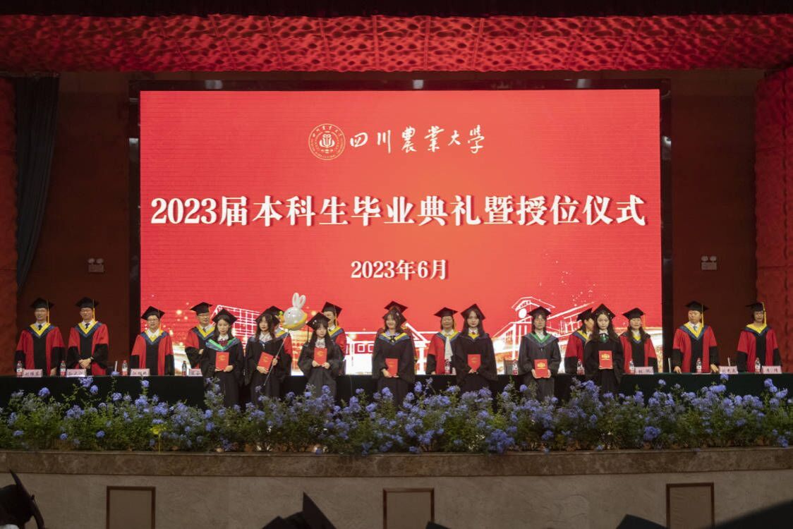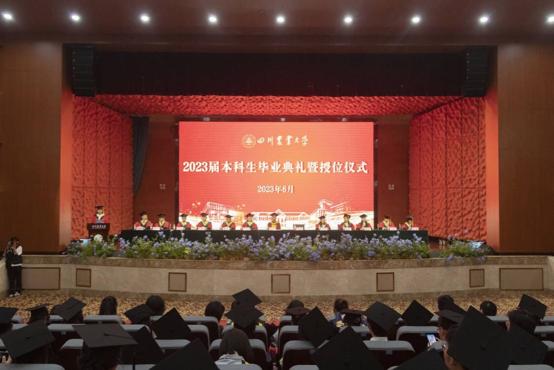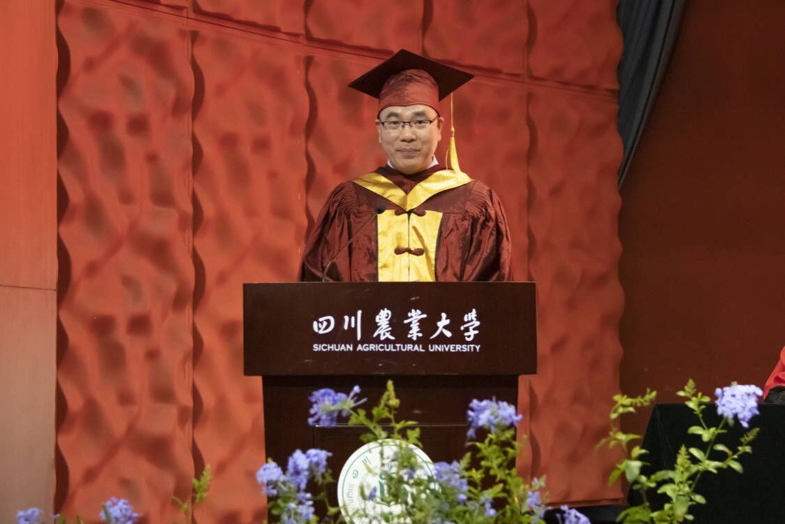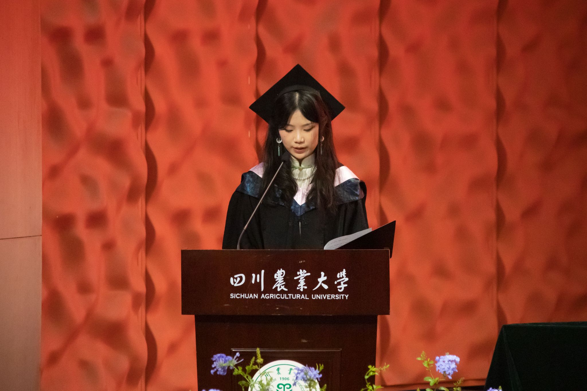 李西首先代表91pron 向2023届全体毕业学子表示热烈祝贺,肯定了同学们在大学期间取得的优异成绩,以及经过大学磨砺和奋进所展现出的责任与担当,欣喜同学们收获的团结力量和真挚的师生情谊。李西统括新时代要求和背景,寄语毕业生要放大格局,相互成就;践行仁者不忧、勇者不惧;领悟变则通,通则达,达则成。她谆谆叮咛毕业生们:“从今天起,大家就从川农学子成为年轻的川农校友,无论身在何处,91pron 永远是你们的坚强后盾,91pron 的大门永远向你们敞开,欢迎常回家看看!”
