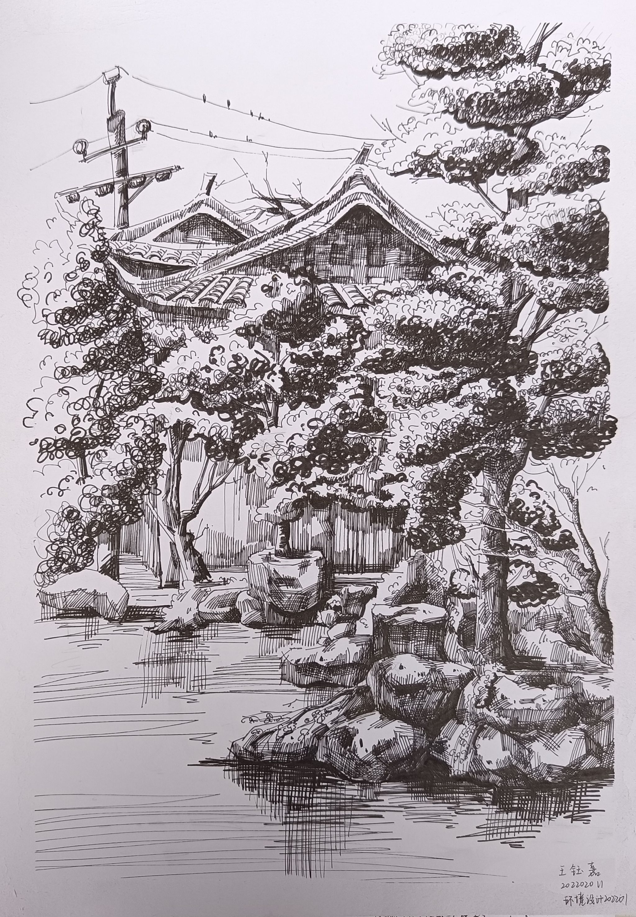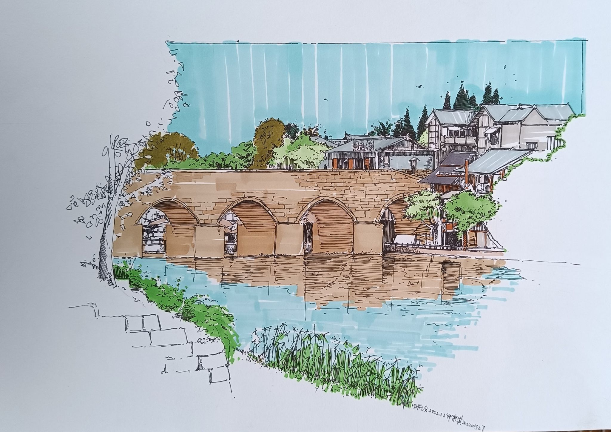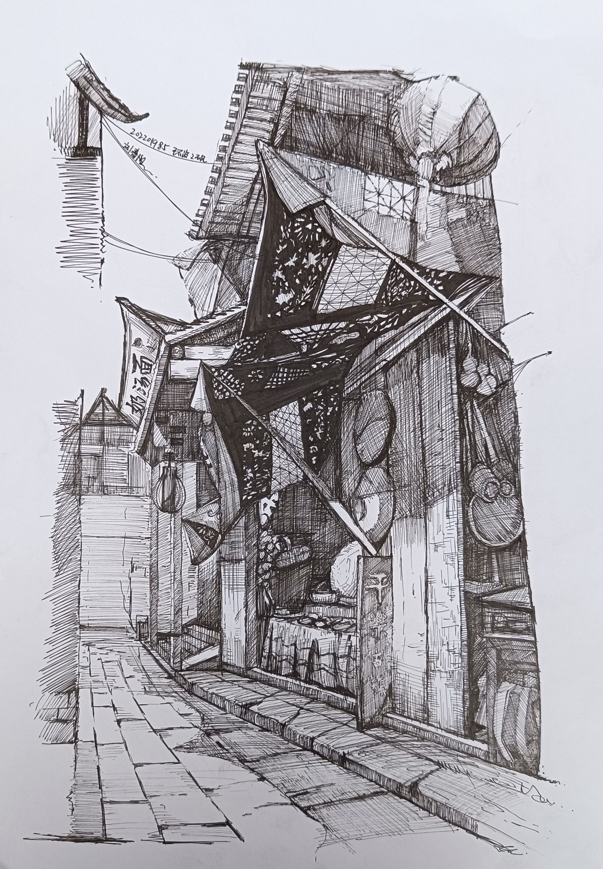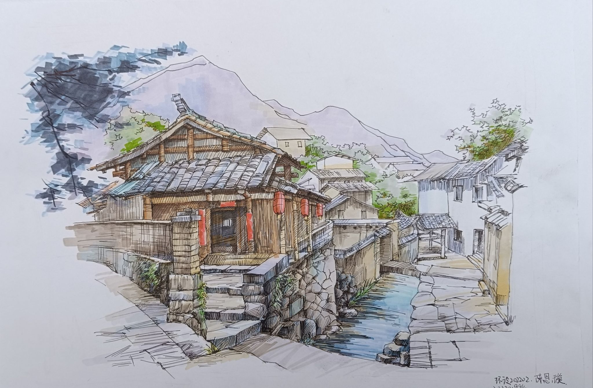 环境设计专业写生实践每年在一年级下学期进行。技法和材料不限,有同学用构成手法重新解构风景;也有同学以铅笔或苍劲的钢笔线条,客观再现对象;还有同学用斑斓的色彩表达旖旎多姿的美景……风格多种多样,都展现出了同学们心中的平乐印象。