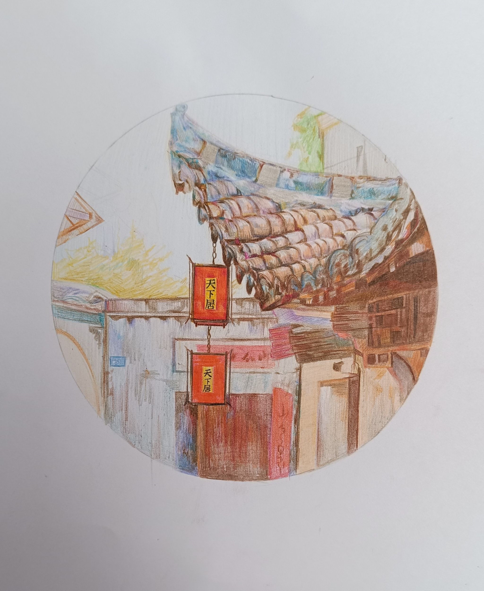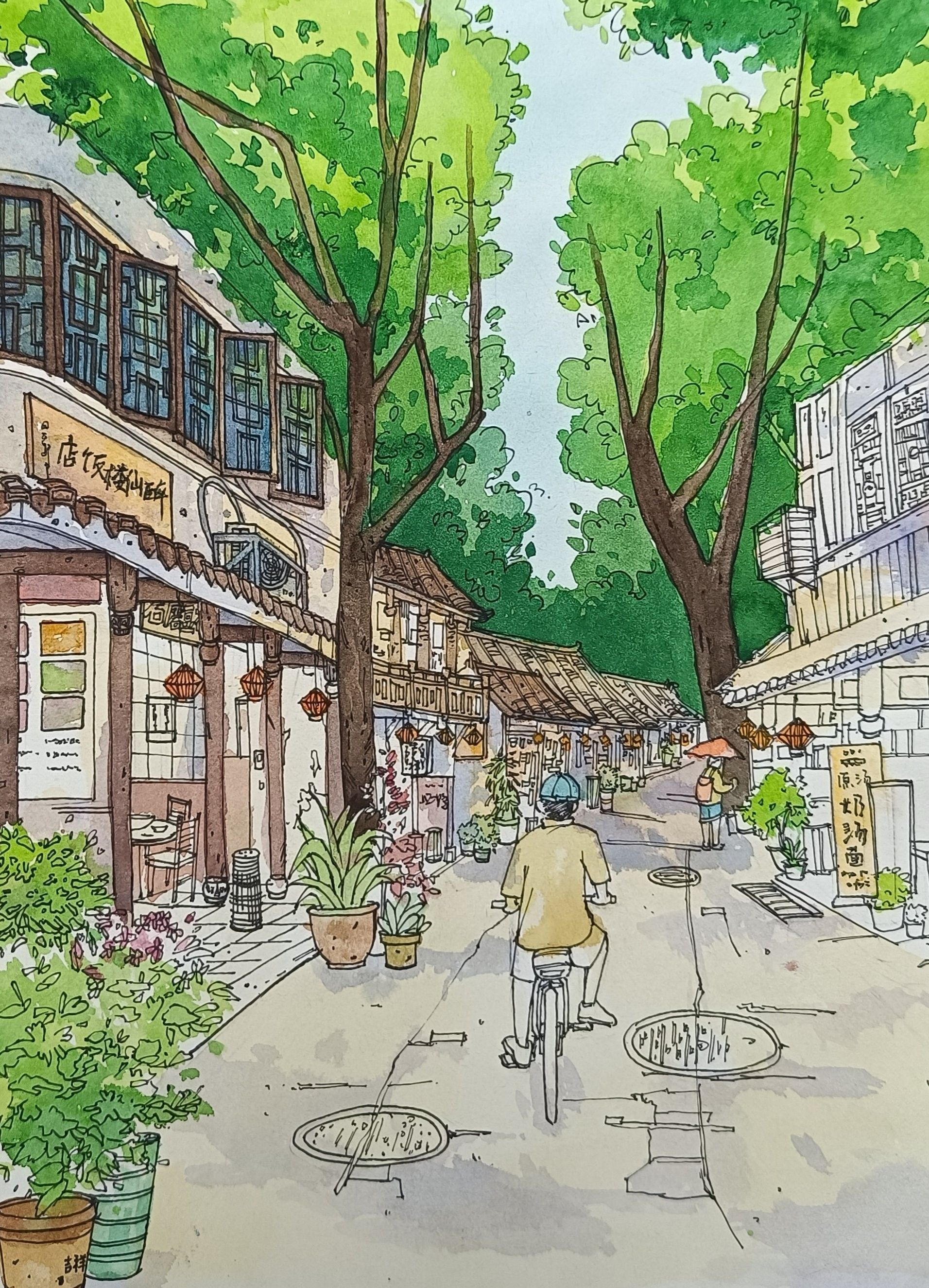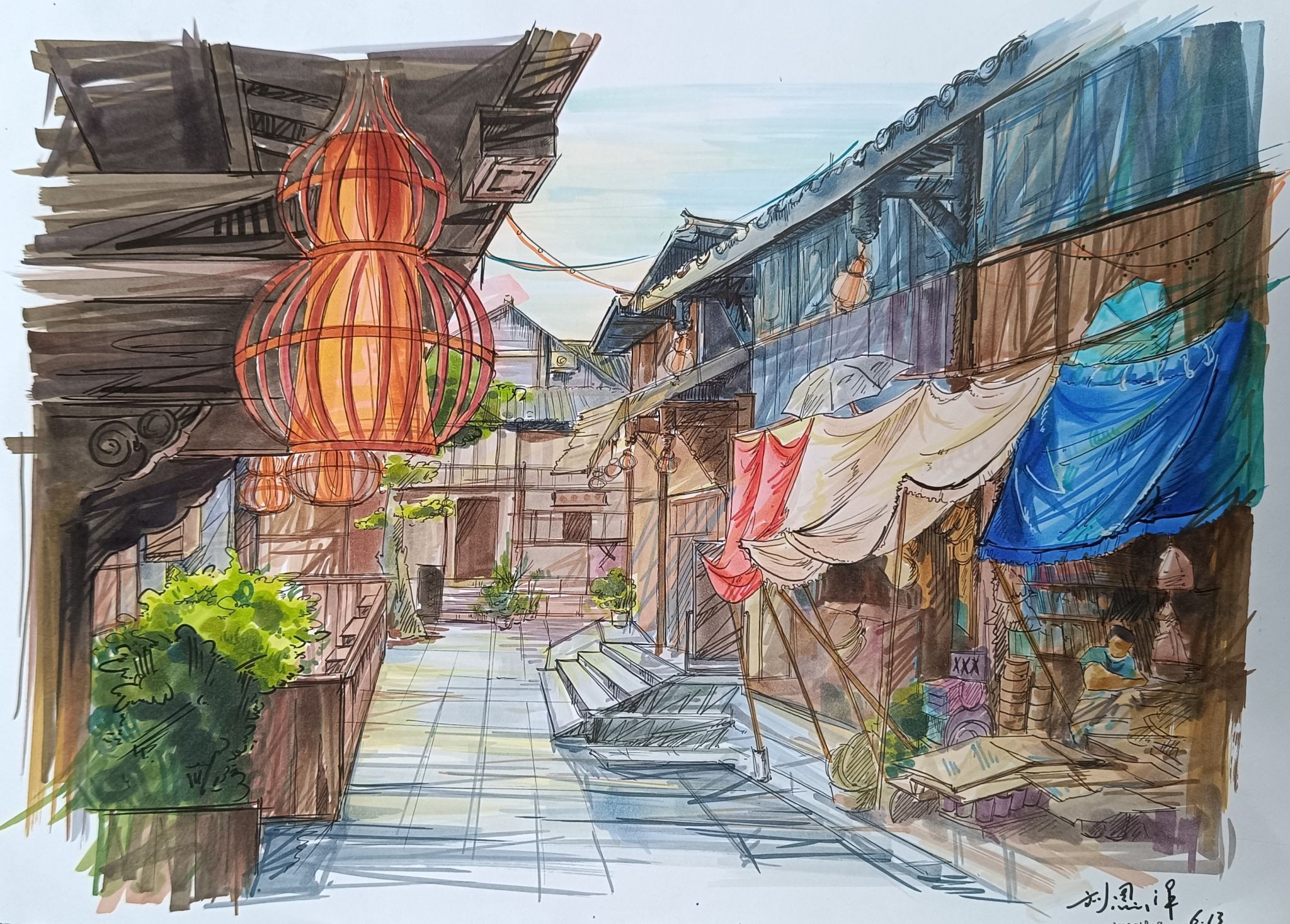 平乐,是一个有山有水的美丽小镇。那里有雕刻的细致和精美,也有岁月打磨的斑驳印记。老街的绿木葱茏,生活的适佳恬宜,都在六月的清风斜阳里,被同学们用手中的画笔深情描绘出。