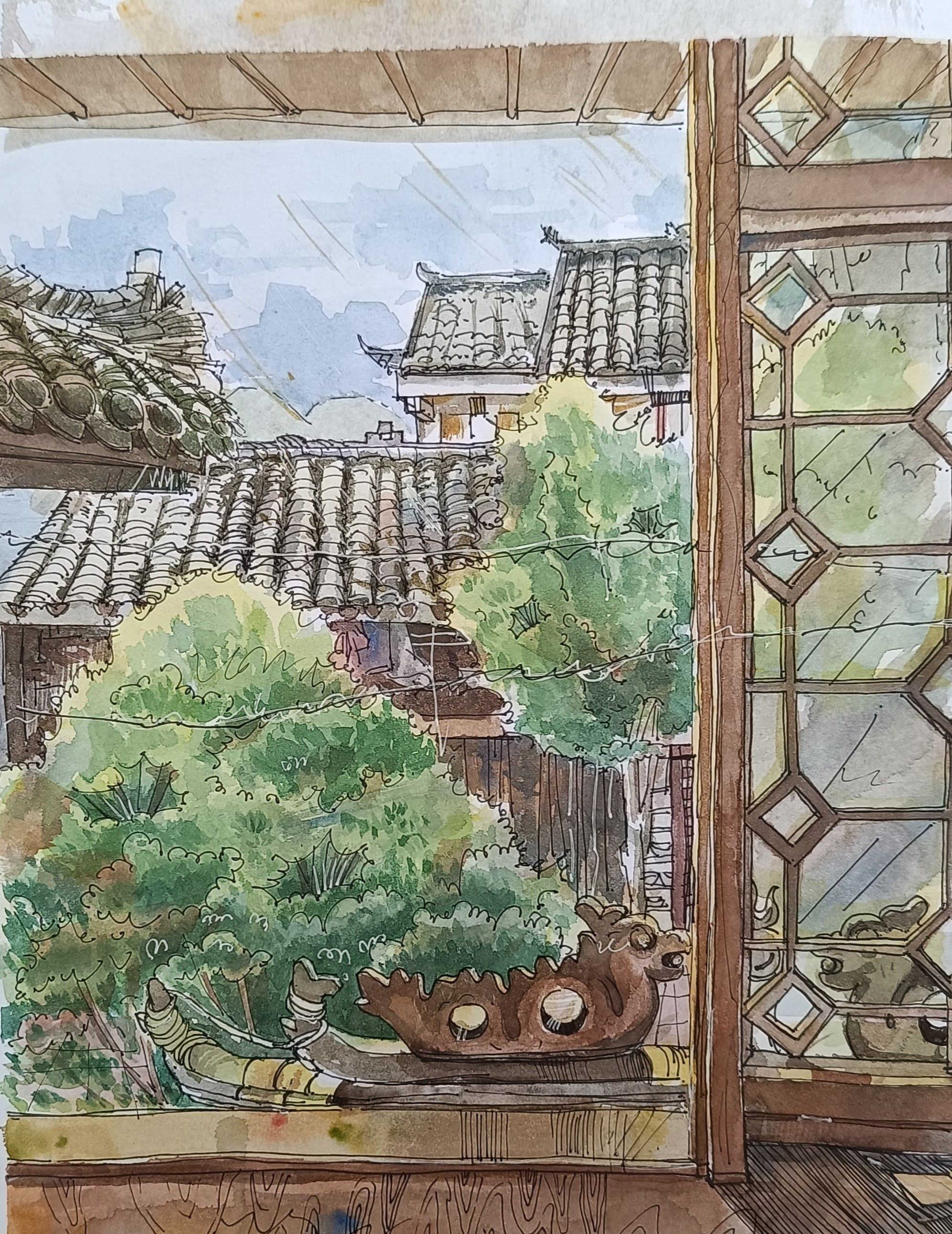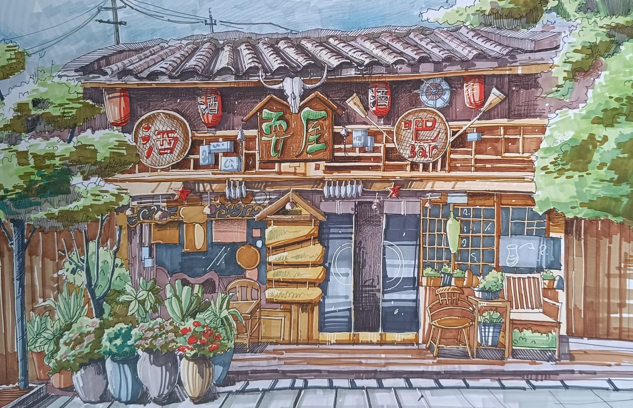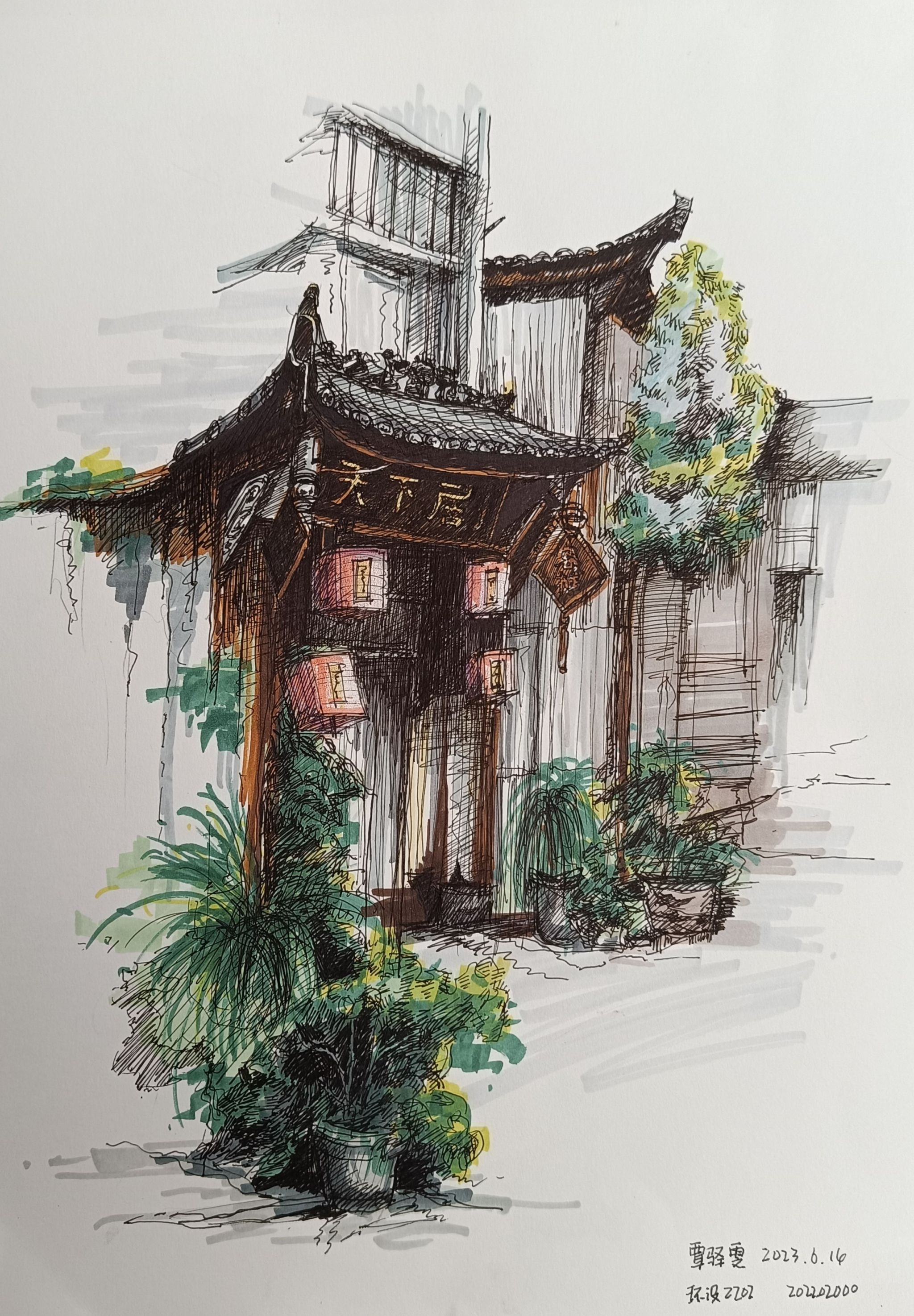 平乐,是一个有山有水的美丽小镇。那里有雕刻的细致和精美,也有岁月打磨的斑驳印记。老街的绿木葱茏,生活的适佳恬宜,都在六月的清风斜阳里,被同学们用手中的画笔深情描绘出。