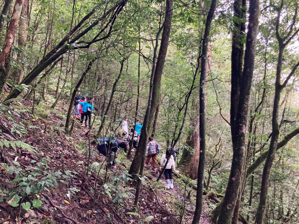 社区调研结束后,同学们继续前往大熊猫国家公园汶川园区展开大熊猫国家公园生物多样性保护为主题的调研,在调研线路两侧同学们观察到了明显的褶皱和断裂地质层,说明由水相转换成陆相的出露页岩,从而明白了卧龙汶川国家公园园区的形成。沉浸在大熊猫国家公园的同学们了解到了高山峡谷区极其丰富的生物多样性,卧龙片区发现并命名的植物新物种、大熊猫和雪豹双旗舰物种分布情况等,掌握了大熊猫调查、植物多样性调查、群落结构调查的方法,以及模拟了植物群落样方调查。收集的宝贵数据将为大熊猫国家公园生态安全格局、区域可持续协同发展以及制定科学合理的生态补偿政策为导向的规划与集成管理提供决策参考和依据。