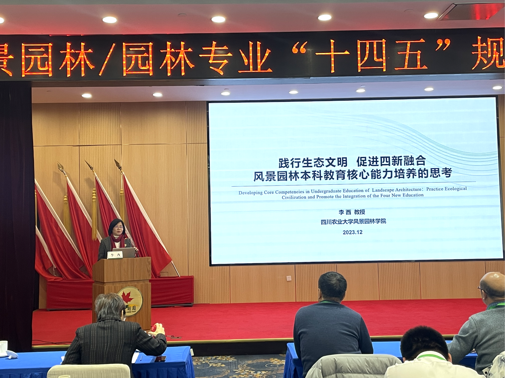 研讨会上,作为本次风景园林/园林专业“十四五”规划系列教材总顾问,陈其兵作了《新形势、新挑战下的风景园林》的主旨报告,并探讨了园林人才培养新要求及教材配套建设工作若干问题。李西也作了《践行生态文明,促四新融合,风景园林本科教育核心能力培养的思考》的主旨报告,详细阐述了我校相关专业学生培养的实践与思考。