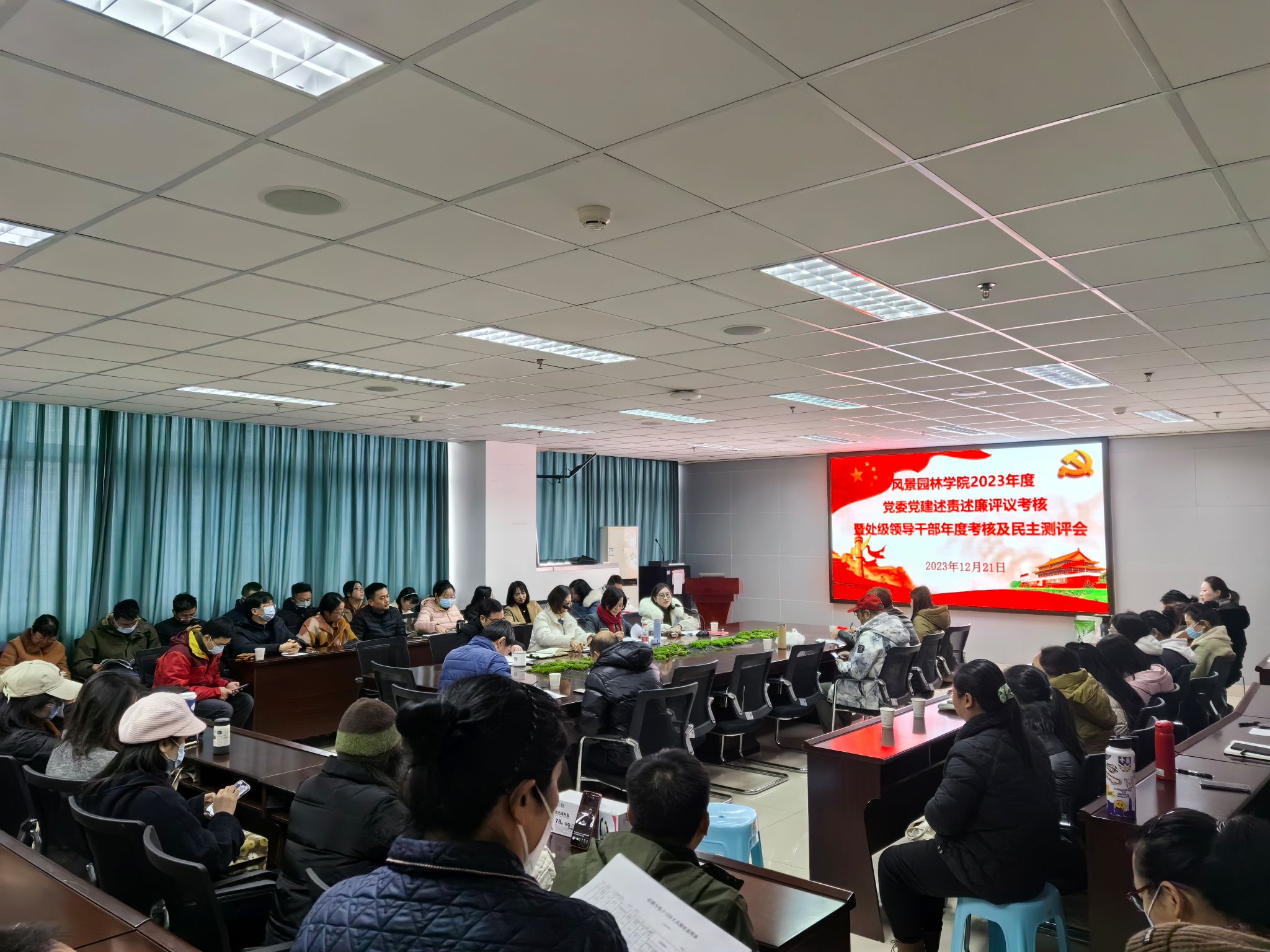 12月21日,91pron 2023年度党委党建述职述责述廉暨处级领导班子民主测评会在7教609召开。院长、党委书记李西,副院长姜贝贝、党委副书记、纪委书记王丽萍、副院长蔡军及全院教职工参加会议。会议由王丽萍主持。