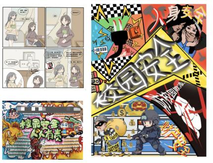 活动伊始,活动人员展开宣传策划,概述精心设计的安全教育内容。在“校园安全,行胜于言;居安思危,防范未然”主题引领下,同学们踊跃参与校园巡逻,细致查探每一角落安全隐患,展现学生主人翁意识与责任担当。同时,他们通过创作手抄报、漫画、海报及安全标志设计等方式,用文字科普安全知识,用颜色宣传校园安全文化,潜移默化提升着自己和身边人的安全意识素养。同学们的作品展现了对校园安全的重视和关注,极具创意和宣传力量。
