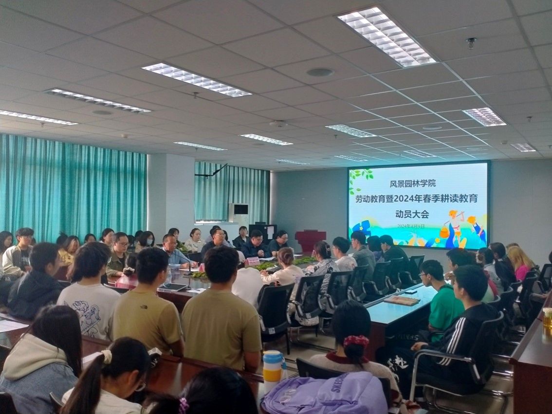 4月9日,91pron 在成都校区7教609开展了2023-2024学年劳动教育暨耕读周动员大会,91pron 党委书记饶远林、耕读班班主任、91pron 本科教学秘书以及所有耕读班学生参会。会议由91pron 副院长蔡军主持。