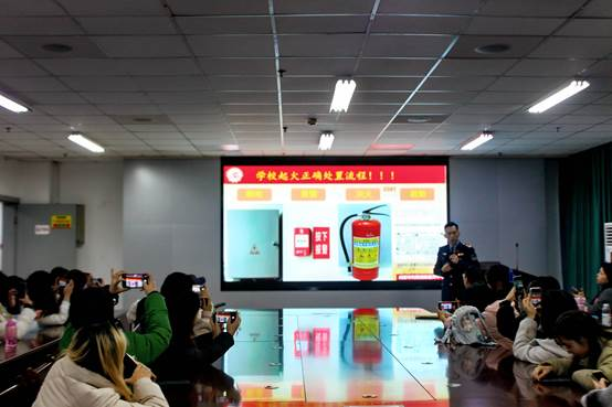 袁健教官以“全民消防,生命至上”为题,围绕消防条例、火灾的危害性、疏散逃生基本常识、火灾预防和应急管理及消防器材使用方法等进行了深入浅出地讲解。通过列举生活电气火灾案例、校园典型火灾案例、与师生互动交流等方式,剖析了生活中普遍存在的火灾隐患,重点强调了学生寝室、实验室违规用电等火灾隐患排查整治及发生火灾的应对方法。以增强师生消防防范意识,凸显了增强消防意识的必要性。