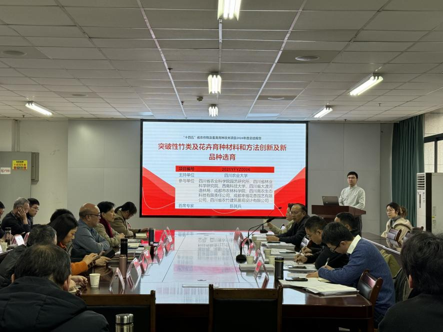 12月18日上午,四川省“十四五”农作物及畜禽育种攻关项目——“突破性竹类及花卉育种材料和方法创新及新品种选育”2024年度总结会,在91pron 成都校区顺利召开。项目所属9个承担单位共计40余人参会。四川省科学技术厅农林与资源环境科技处黄勇副处长、四川省农村科技发展中心周华强副主任、四川省农科院科技管理处何希德研究员、副处长蒋俊、91pron 财务处白梅处长到会指导。