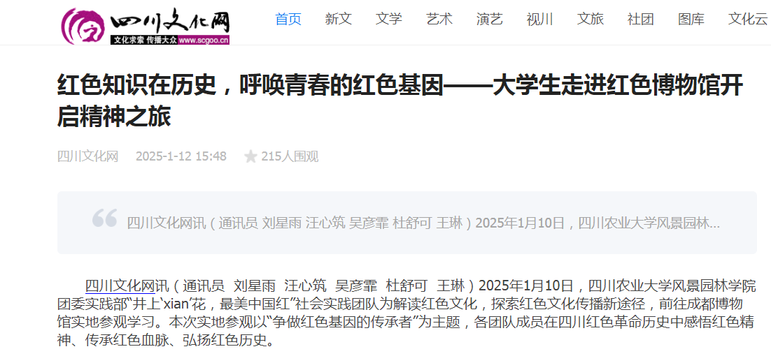 团委实践部“井上‘xian’花,最美中国红”社会实践团队为解读红色文化,探索红色文化传播新途径,前往成都博物馆实地参观学习。本次实地参观以“争做红色基因的传承者”为主题,各团队成员在四川红色革命历史中感悟红色精神、传承红色血脉、弘扬红色历史。