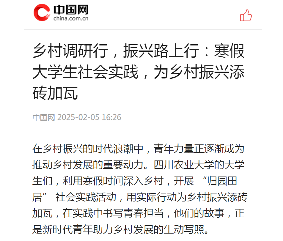 乡村振兴,不仅是国家的重要课题,更是新时代青年义不容辞的责任。川农学子的此次实践,不仅启迪了自身的思想,让同学们切实体会到乡村发展的现状,也为其他大学生树立了榜样。