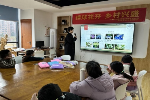 1月10日上午,实践团队来到成都市温江区永宁街道杏林社区,给社区小朋友进行了一场关于“绣球花带动乡村振兴”的知识宣讲。该宣讲从绣球花种类、栽培方式、与乡村振兴的密切关系等方面展开,有效拓宽了青少年对乡村振兴板块知识的认识。