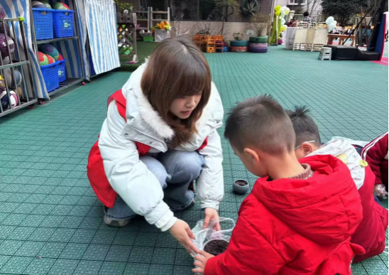 “为什么胡萝卜还没长大?”“为什么栀子花浇水还是蔫了?”在植树过程中,小朋友们的好奇心被充分激发,接连抛出各种有趣的问题,面对这些天真又充满探索欲的问题,志愿者小老师们总是面带微笑,耐心解答。他们用通俗易懂的语言,深入浅出地为小朋友们讲解植物的生长习性、种植要点以及养护知识,将自然科学的种子播撒在孩子们心间,在他们幼小的心灵中种下探索自然奥秘的火种。
