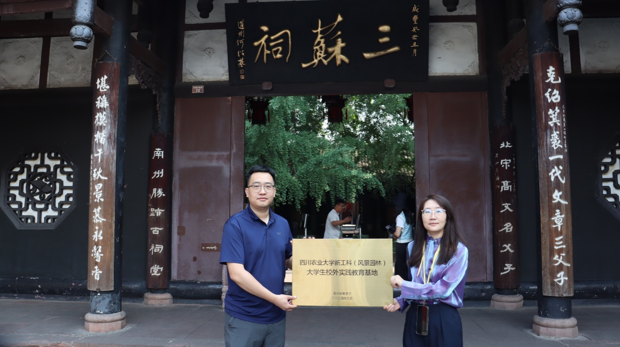 期间,风景园林系主任潘翔副教授与三苏祠博物馆园林科科长游欣共同为“四川省教育厅·91pron 新工科(风景园林)大学生校外实践教育基地”揭牌。挂牌仪式的举行,标志着三苏祠博物馆正式成为91pron 风景园林专业的新工科校外实践教育基地。未来,91pron 将依托基地平台,进一步深化产教融合、科教协同,持续优化“课堂—基地—行业”协同育人体系,探索“地域性文化景观”特色课程群建设,助力地方文化遗产保护与风景园林学科高质量发展。
