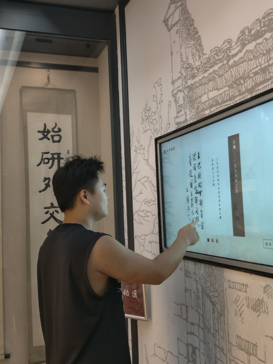 纪念馆内,时光仿佛凝滞。当分队成员肃立于先生年少时伏案苦读的复原场景前,一张书桌、一盏旧灯、几卷泛黄书籍,无声胜有声地讲述着“坐冷板凳”的坚毅。展柜中先生旅德期间的书信手稿,那些力透纸背、饱含忧思的字迹,更让同学们久久驻足凝视。青年学子王梓涵在先生手抄的《少年中国说》片段前感慨:“那字里行间喷薄欲出的热望,穿越百年依然滚烫,烧灼着我们的心,也照见了我们肩上的重量。”