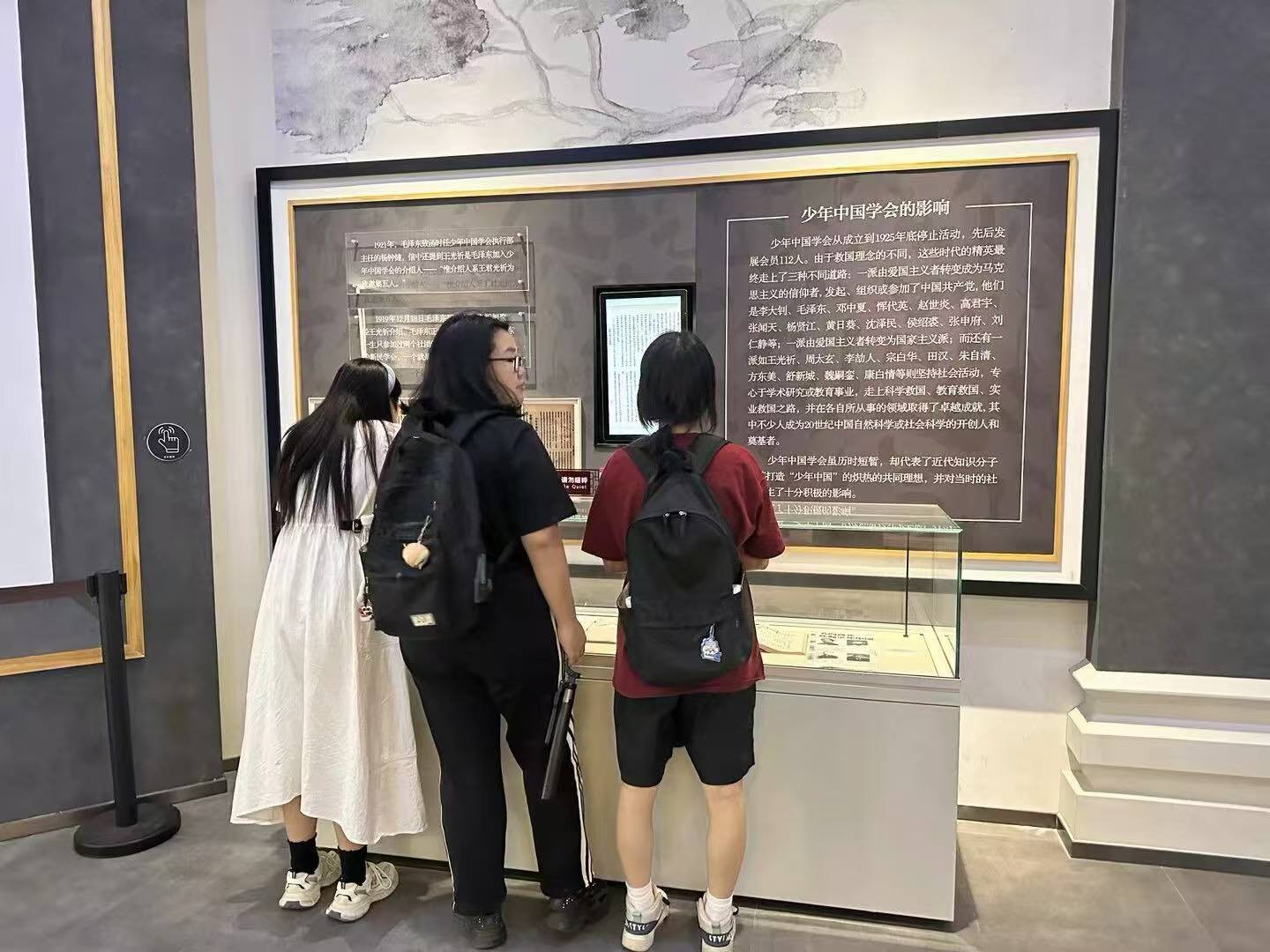 同学们认真聆听讲解员的介绍,不时驻足观看展品,还拿出笔记本记录。在“少年中国革命先驱”展区,看到王光祈先生在五四运动时期为国家和民族前途命运积极奔走的身影,同学们深受触动;在“蜚声寰宇音乐名家”展区,大家被他在音乐领域的卓越成就所折服。