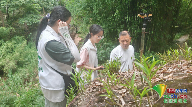 图为实践队员观察金钗石斛生长情况。杜悦文 供图