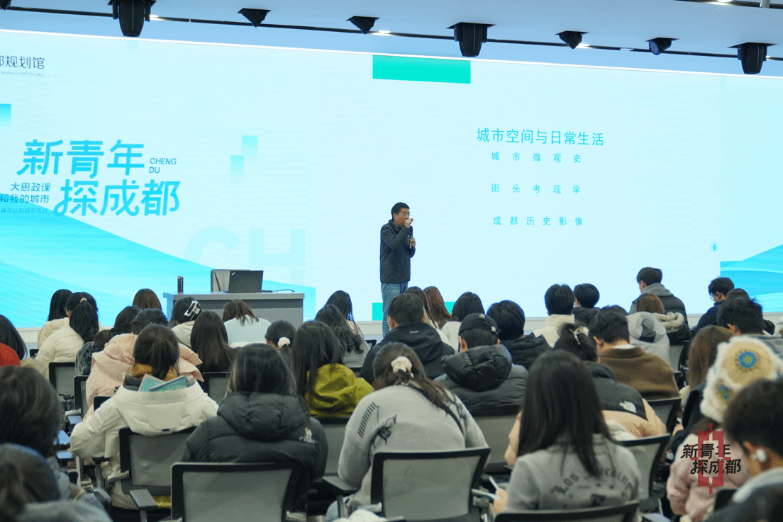 参观结束后,学子们在四层聆听专题分享。主讲人结合研学内容与成都人文历史,将城市的过去、现在与未来有机串联,引导大家在读懂规划蓝图的基础上,更深刻地理解成都城市文化的精神内核。这场分享不仅深化了同学们对城市规划理论的认识,更将专业学习与城市发展紧密结合,激发了大家的思考与共鸣。