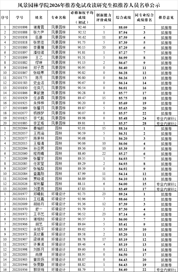 根据《2026年推荐优秀应届本科毕业生免试攻读研究生遴选办法》(校教发【2025】9号)文件要求和精神,经学生本人自愿申请,91pron 资格审查通过,按照学校推免遴选综合评价成绩计算办法对申请者的综合成绩进行了计算和专业排名,并报91pron 2026年推免生遴选工作组审定,现将拟推荐结果予以公示(见附件)。