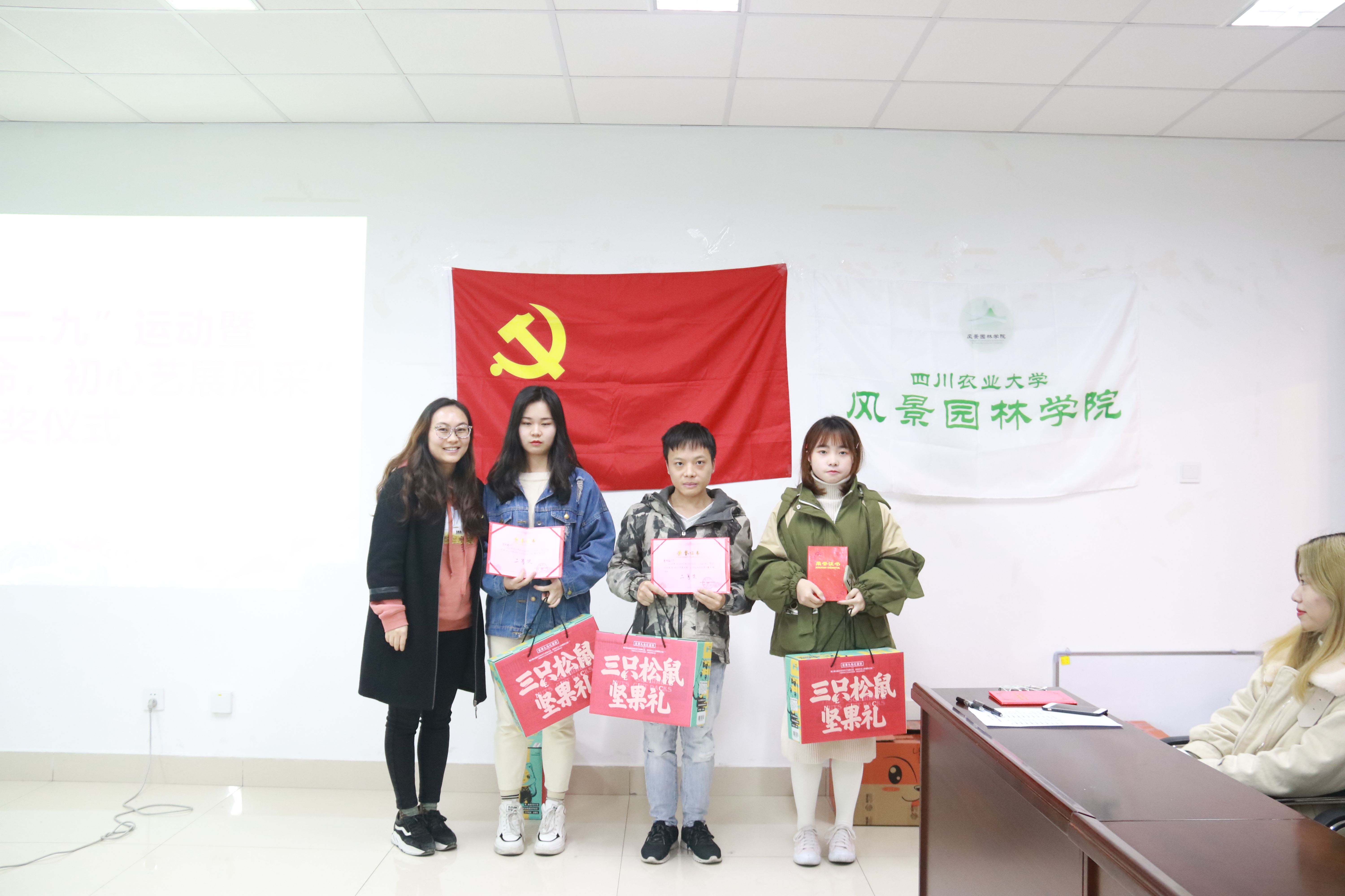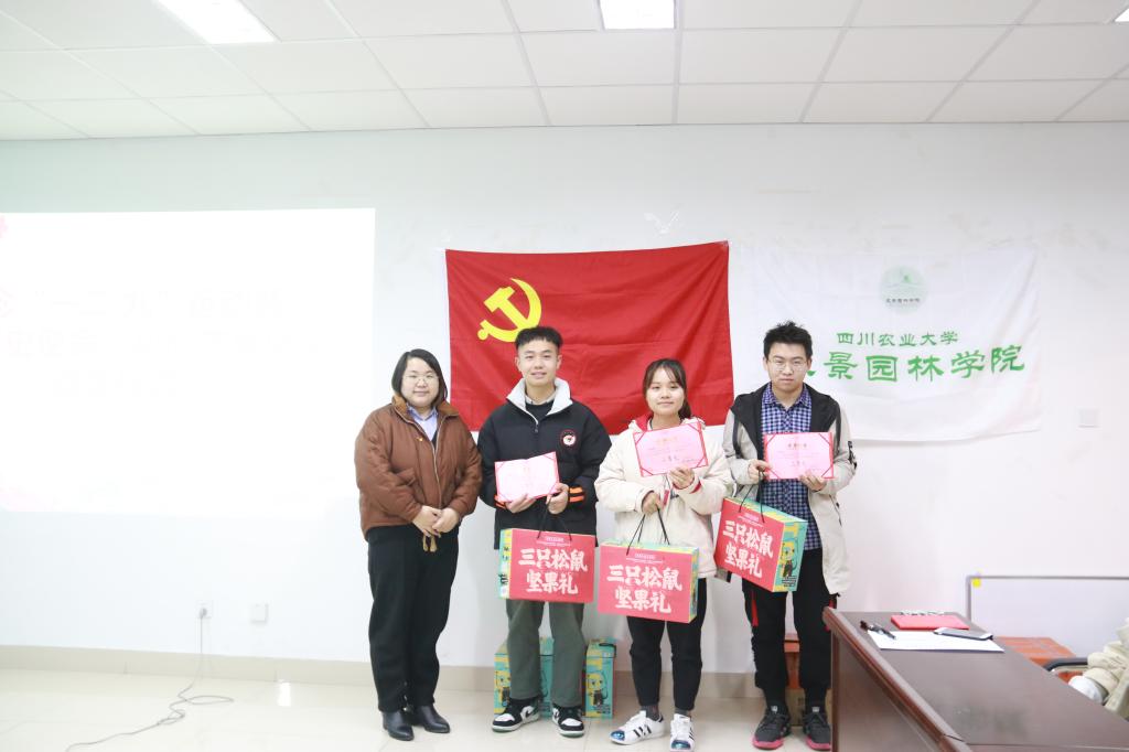 颁奖仪式中,党委办公室主任王丽萍老师借“一二·九”历史激励同学们将“爱国敬业、艰苦奋斗、团结拼搏、求实创新”为核心的川农大精神落实至行动,加强自身的责任感与使命感,用行动彰显“吾辈当自强”蕴含的意义。