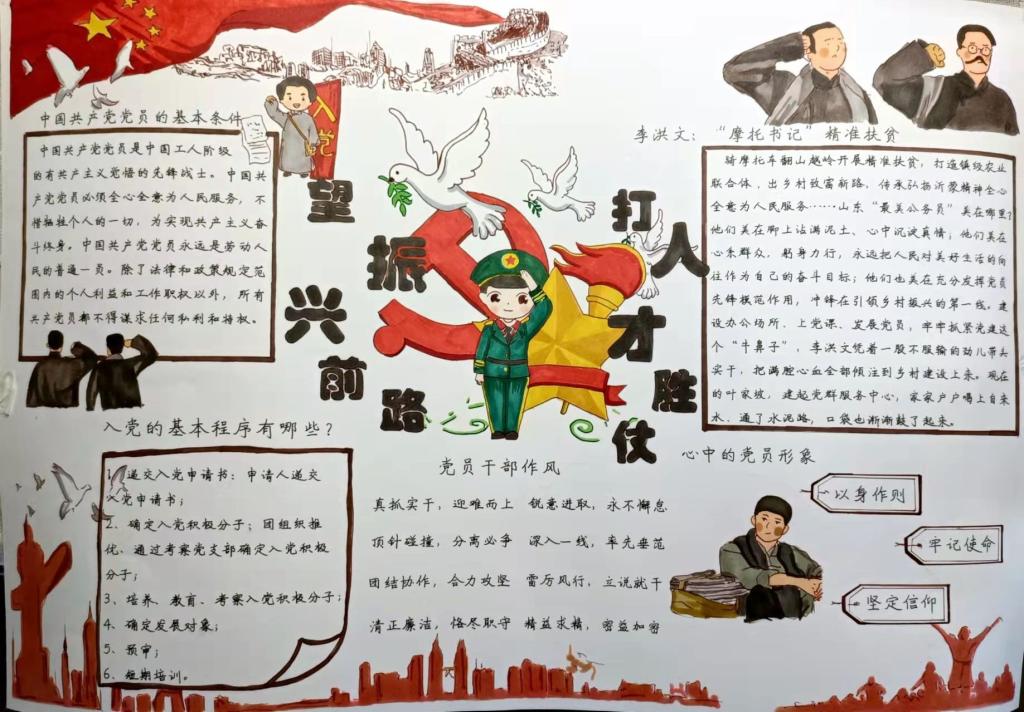 本期党校实践活动为学员提供两种活动方案灵活选择,以书写、绘画两种形式鼓励学员的多元化创作;并由学员自由组队参与任一活动。其中,活动一要求参与学员以“追忆党史峥嵘,浪遏时代飞舟”为主题开展小组微宣讲,以小话题反映大主题,把宣讲落到细处、小处、实处;活动二则是名为“望振兴前路,打人才胜仗”的图文结合创意大赛,学员通过图文创作的方式用自己的独特语言介绍《中国共产党党员教育管理工作条例》,同时以身边积极投身乡村振兴的青年党员为标杆,多元化地展现心中的党员形象。活动一经发布便获得了学员们的青睐,学员们积极参与,认真准备,高效开展活动,其中涌现出了一大批优秀作品。通过本次的党校培训和实践活动不少学员表示不管是授课内容还是活动创作,自己真正的做到了在实践中践行理想信念,同时结合了专业理论知识,感到非常受用。