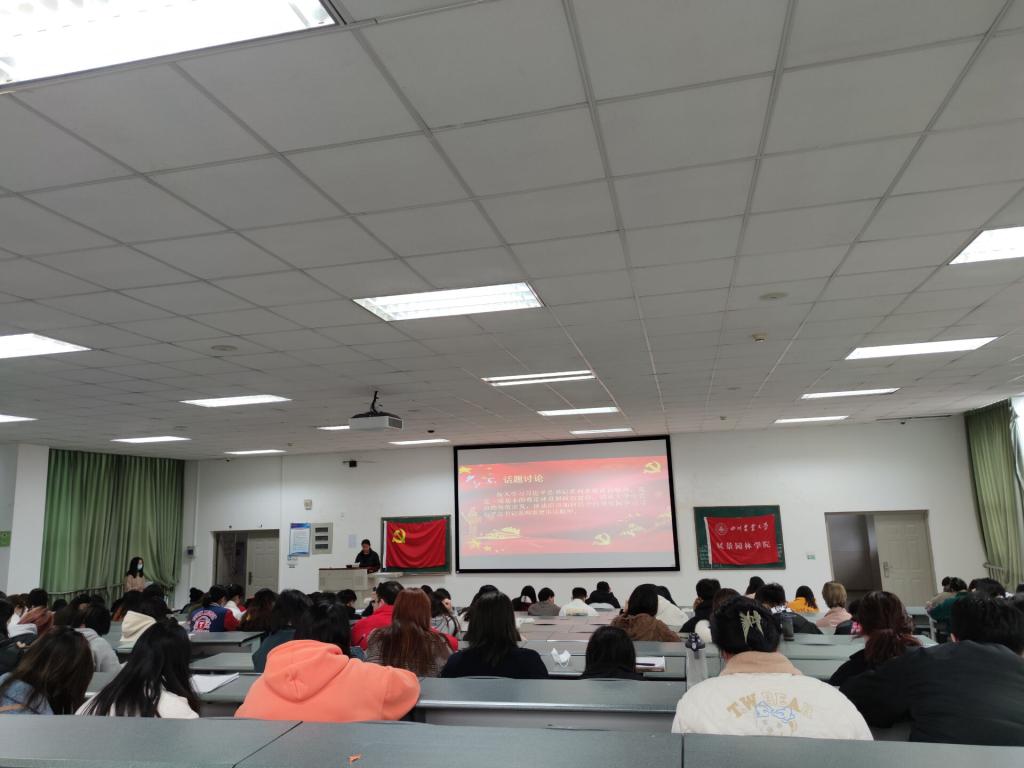 第二个环节,话题讨论中,各支部同学们就作为当代大学生,应该如何结合自身实际学习习近平总书记系列重要讲话精神这一问题进行了积极有序的发言。最后会议在主持人简洁有力的总结中圆满结束。