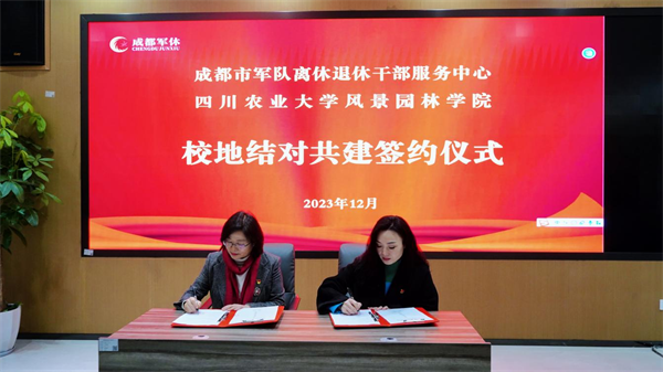 在校地结对共建签约仪式上,双方主要负责人共同签署了框架协议,并将成都市军休中心作为91pron 的“社会实践基地”“红色教育基地”,共同推动红色基因代代相传。