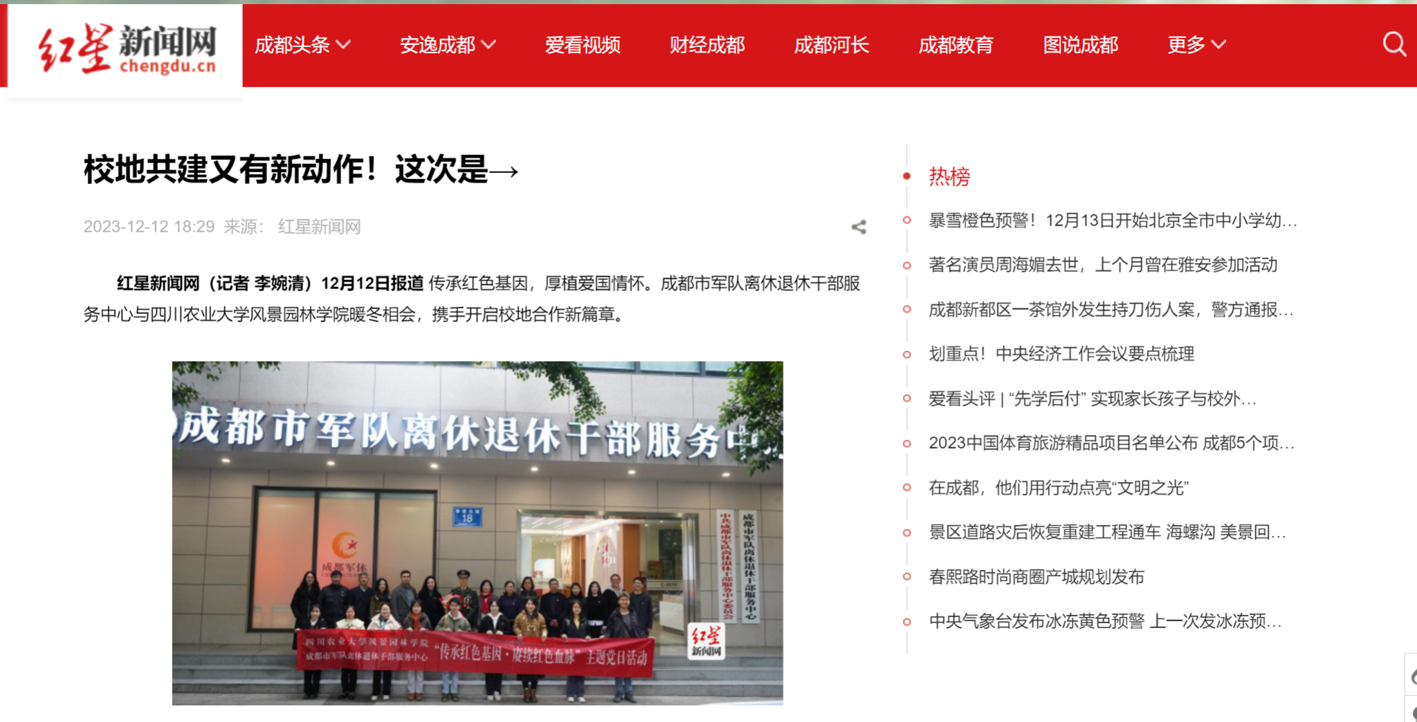 红星新闻网(记者 李婉清)12月12日报道传承红色基因,厚植爱国情怀。成都市军队离休退休干部服务中心与91pron 暖冬相会,携手开启校地合作新篇章。