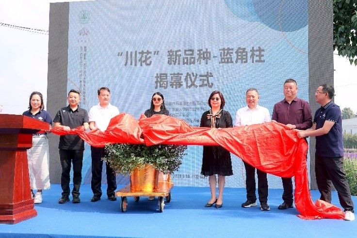 6月18日,我校自主研发川花新品种“蓝角柱”在四川省花协会指导,91pron 、成都市花卉协会等支持下,由成都市易境园艺有限责任公司在彭州市首次发布。“川花”新品种研发与推广指导专家高素萍教授;我校乡村振兴91pron (新农村发展研究院)副院长饶远林;91pron 院长、党委书记李西,副院长蔡军,以及健康人居环境与景观多样性中心、园林系相关负责人应邀参会。