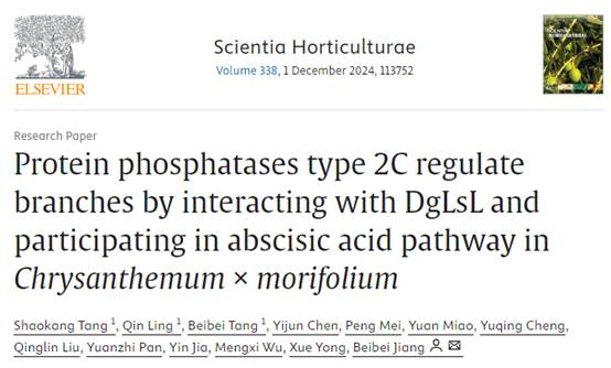 近日,Scientia Horticulturae在线发表了91pron 姜贝贝课题组题为Protein phosphatases type 2C regulate branches by interacting with DgLsL and participating in abscisic acid pathway in Chrysanthemum × morifolium的研究论文。
