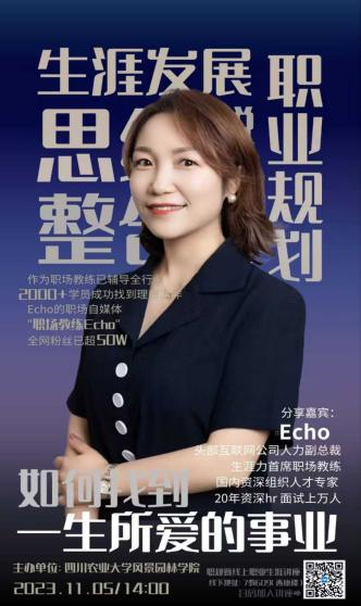 为促进大学生提高生涯规划综合能力同时作为91pron 首届“菁英杯”大学生职规赛同期协同活动,91pron 特别邀请到生涯力首席职场教练、头部互联网公司人力副总裁张晨老师,在2023年11月5日在91pron 成都校区7-609和613,为同学们举办了“如何找到一生所爱的事业”为主题的生涯规划讲座。