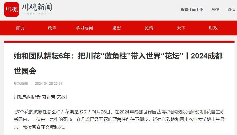 【媒体视角-川观新闻】她和团队耕耘6年:把川花“蓝角柱”带入世界“花坛”丨2024成都世园会
