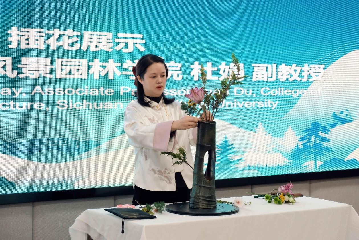 开幕式上,主持开幕式的91pron 副院长姜贝贝教授介绍了线上、线下参会情况,并对与会者表示欢迎。91pron 杜娟副教授还展示了定名为“自然之姿”的中国传统插花作品,体现出现代插花低碳环保、可持续发展的新理念,与会议主题不谋而合,受到与会者好评。