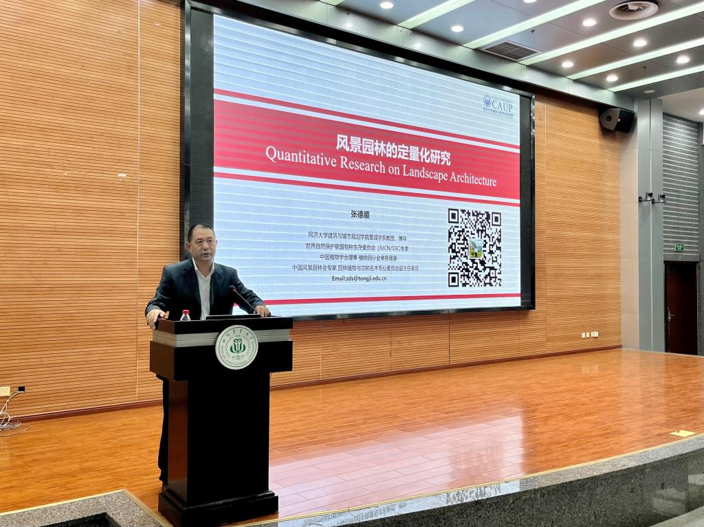 讲座中,张德顺首先阐述了风景园林定量化研究的重要性与必要性,指出“将定量化分析引入风景园林相关领域,能通过参数化的调控提升风景园林设计的景感质量”的重要论断;并围绕“用模糊相似优先比扩大雄安园林植物引种视野”“基于气候信封模型的园林树木引种”“应对气候变化:用气候-物种矩阵为城市立地选择树种”“基于‘植物功能性状-生态系统服务’评价框架的园林树种选择方法”等四个方面,详细阐释了如何在风景园林领域开展定量化的相关研究。