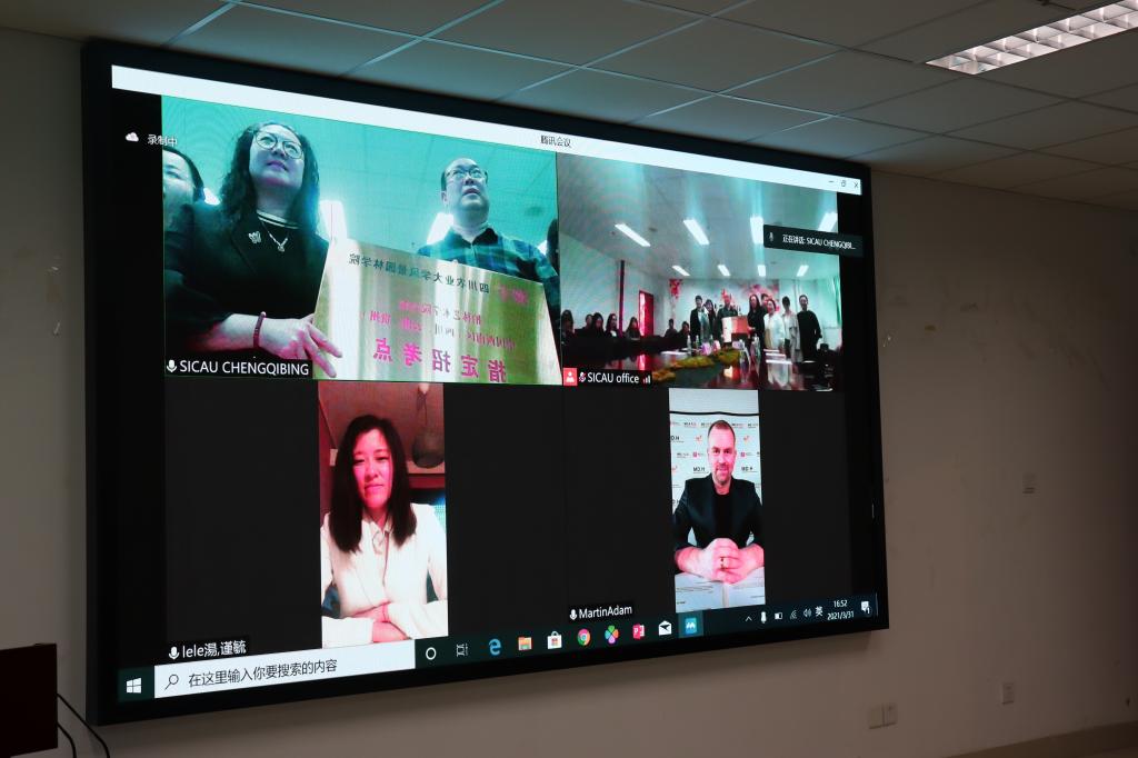 2020331日下午,柏林艺术91pron 国际预科项目授牌仪式在91pron 成都校区第七教学楼准时举行。因为新冠疫情的蔓延和欧洲艰巨的情况,本次会议采用了线上交流的方式,在距离无限制的条件下,大家相遇在一起。双方参会人员有,柏林艺术91pron (ASK)执行院长Martin Adan,91pron 院长陈其兵教授,ASK中国区代表肖瑾女士及部分91pron 师生。