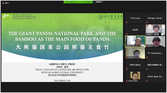 2020年12月22日,受国际竹藤组织(International Bamboo and Rattan Organisation/INBAR)的邀请,我校91pron 院长陈其兵教授参加了“竹子与大熊猫保护”国际研讨会,由于受疫情的影响,此次研讨会采用线上的方式进行。本次研讨会由国际竹藤中心与四川省林业和草原局(大熊猫国家公园四川省管理局)主办,着重研讨竹子在大熊猫保护中的作用,分享中国在大熊猫保护与国家公园建设方面的最新进展,交流竹林栖息地发展与管理、竹子营养、大熊猫主食竹、协同保护与发展等方面的研究进展。