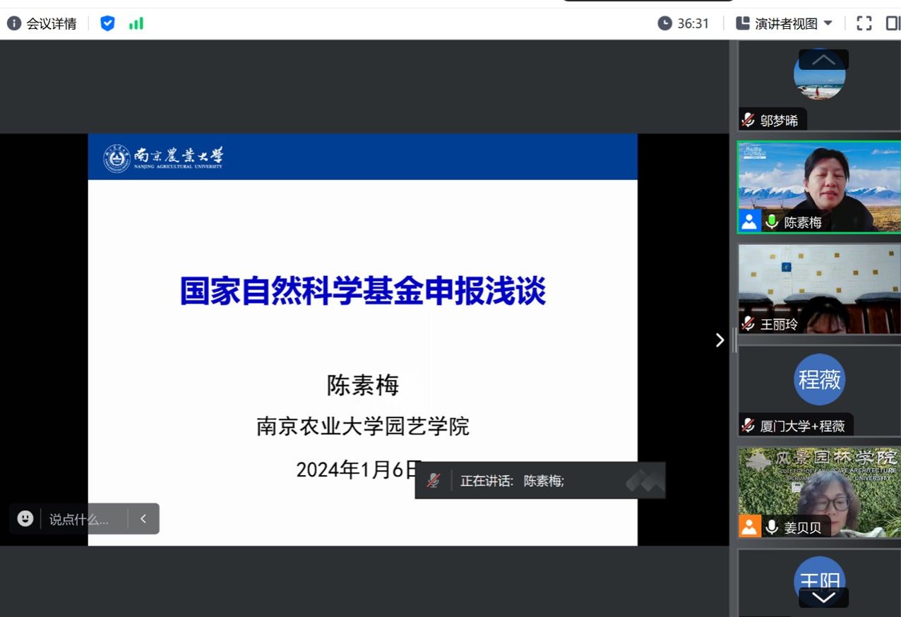 为深入推动国家自然科学基金申报工作,提升基金申报书的质量,91pron 于2024年1月6日和9日分别邀请了南京农业大学陈素梅教授和同济大学彭婉婷助理教授作国家基金申请主题报告和经验分享。