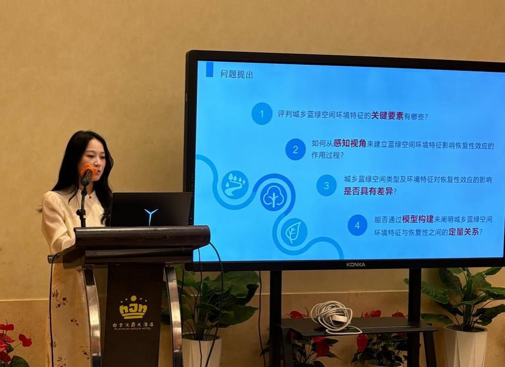 在分论坛活动中,91pron 博士生陈怡霖作了《基于环境特征感知的城乡蓝绿空间恢复性研究》报告。在顺应国家乡村振兴战略和公园城市建设中更加关注公众健康的趋势下,城乡恢复性环境的营造能初步改善城乡居民在接触高品质空间环境方面的不公平现象,践行了“以人民为中心的普惠公平”的协调发展理念。对于解决当今城市人群健康问题、提升整体人居环境质量和优化日常生活品质都提供了新的研究视角与思路。
