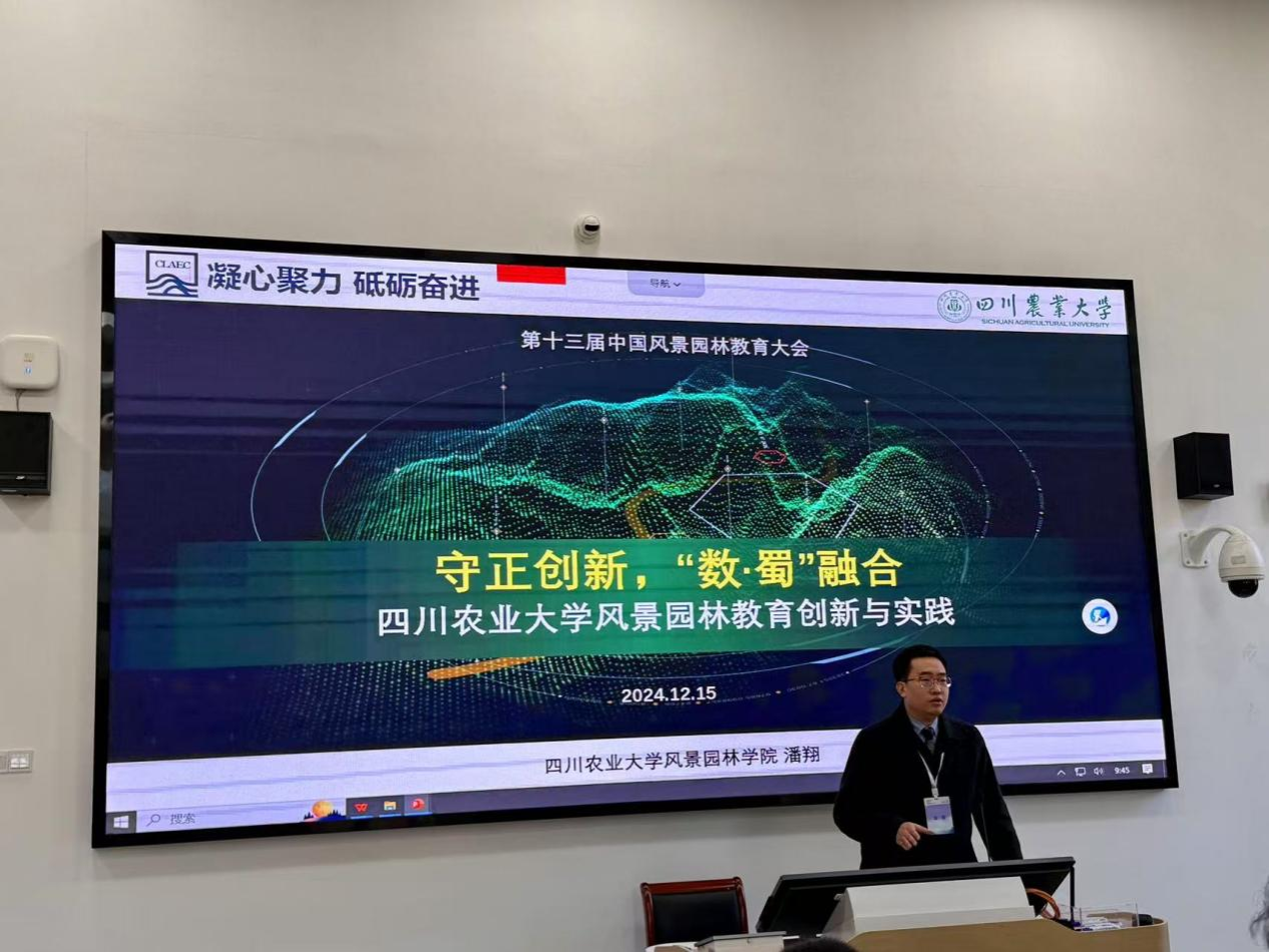 本次大会邀请了全国涉及风景园林教育的高校院所和企事业单位的专家学者进行演讲,内容涵盖1场主旨报告、4大主题论坛和10个分论坛,共200多场报告。我校陈其兵教授在研究生教育论坛做了题为《砥砺奋进的风景园林高质量研究生人才培养思考》的主题报告,风景园林系副主任潘翔副教授在课程思政教育论坛做了题为《守正创新,“数蜀”融合:91pron 风景园林教育创新与实践》的主题报告,风景园林系青年教师吕兵洋在产教融合育人论坛做了题为《“以赛促教”育人模式与实践路径探析》的主题报告。
