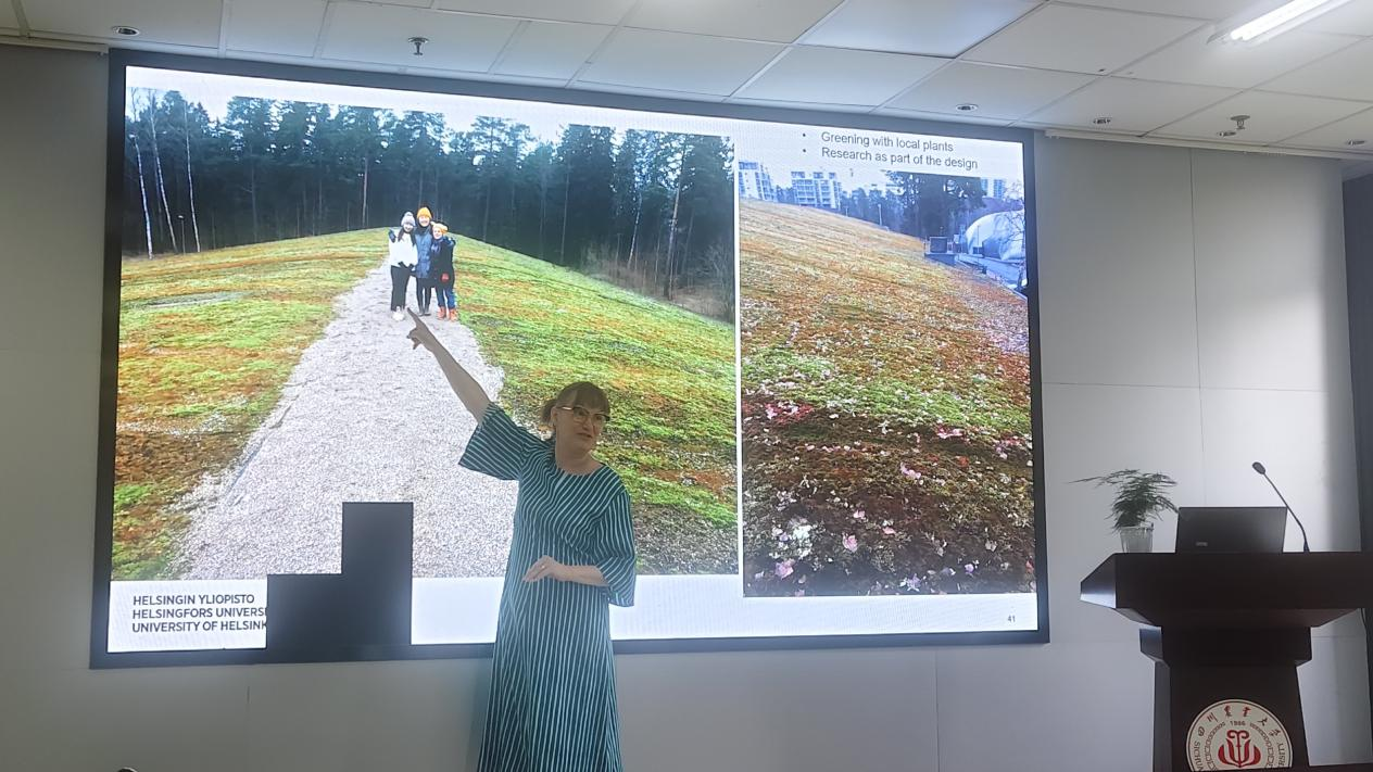 访问期间,苏珊娜教授以“Refraining Urban Green Spaces-from Co-creation to inclusive Nature-Based Governance”(重构城市绿地:多群体参与与自然共创实践)为题在5教530为师生做了学术报告。苏珊娜教授分享了可持续发展理念、变革性城市绿化、城市生态绿地中的多物种连通性及多种群体参与生态建设的方法和实践路径,同时分享了自己在实践中积极参与可持续发展研究和共创自然实践,携手推动全球可持续发展方面的工作;报告指出,在进行绿地建设的时候需要关注多种人群的需求,倡导加强跨领域合作与自然实践,呼吁同学们培养国际视野和创新能力的提升,以更好地应对未来的机遇与挑战。