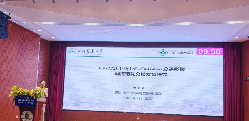 91pron 姜贝贝教授、青年教师雷霆及部分博士研究生代表参会。会上,姜贝贝教授与博士生朱俊钢、刘才磊分别就菊花多分枝育种、少花龙葵镉富集机制及岷江蓝雪花矿化固碳方面的研究作专题报告,展示了我校在观赏植物资源开发与环境修复方面的研究进展,受到与会专家的高度关注。