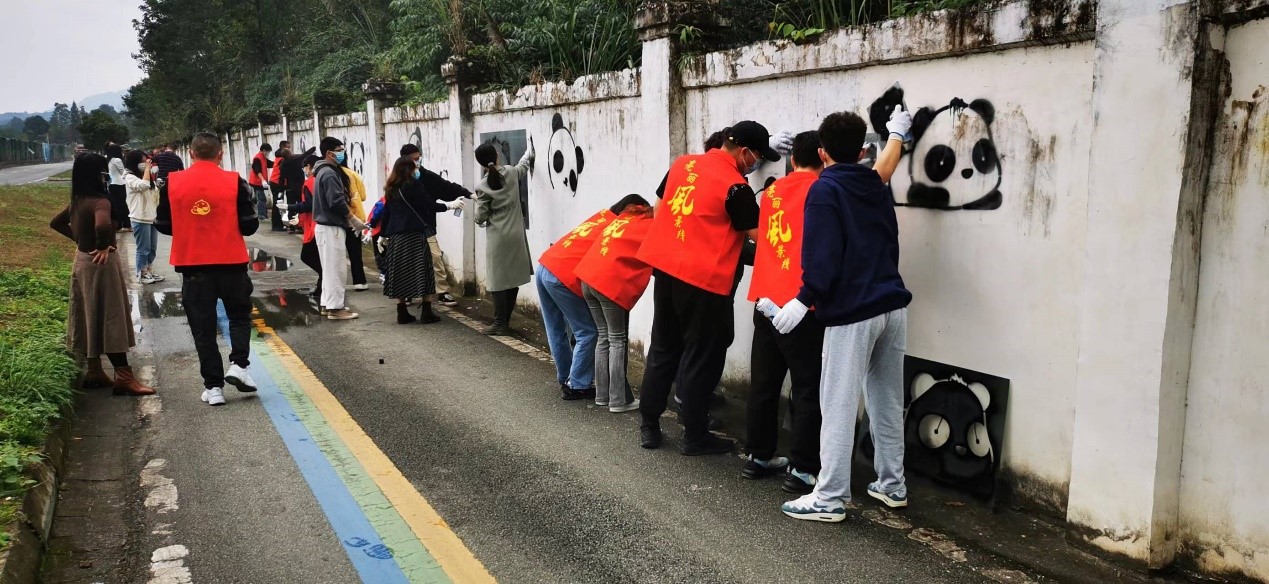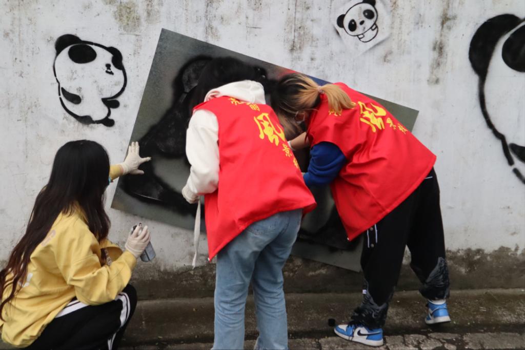 在结束当天的交流活动前,风院师生还与社区党群干部和志愿者一道,通过喷绘手绘等形式,为社区添置特色文化宣传墙。