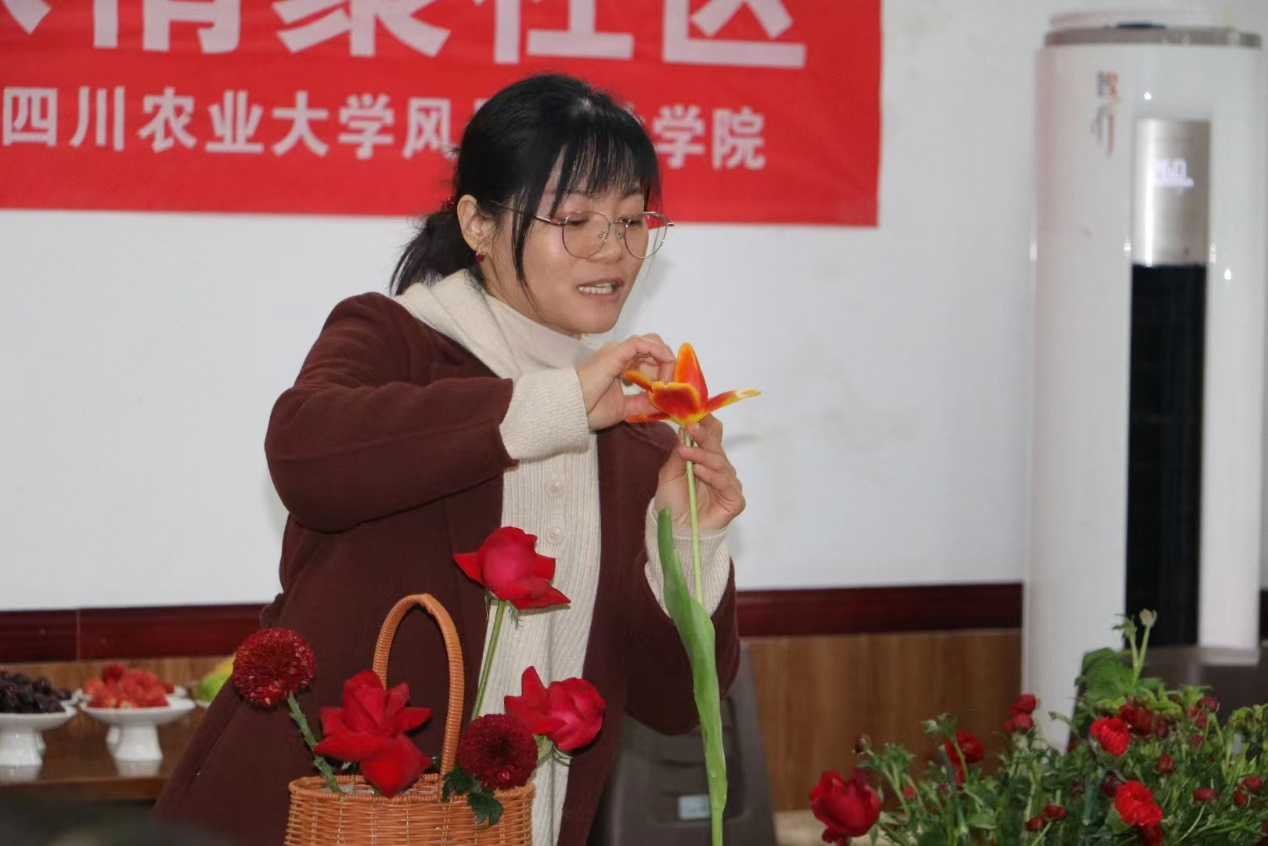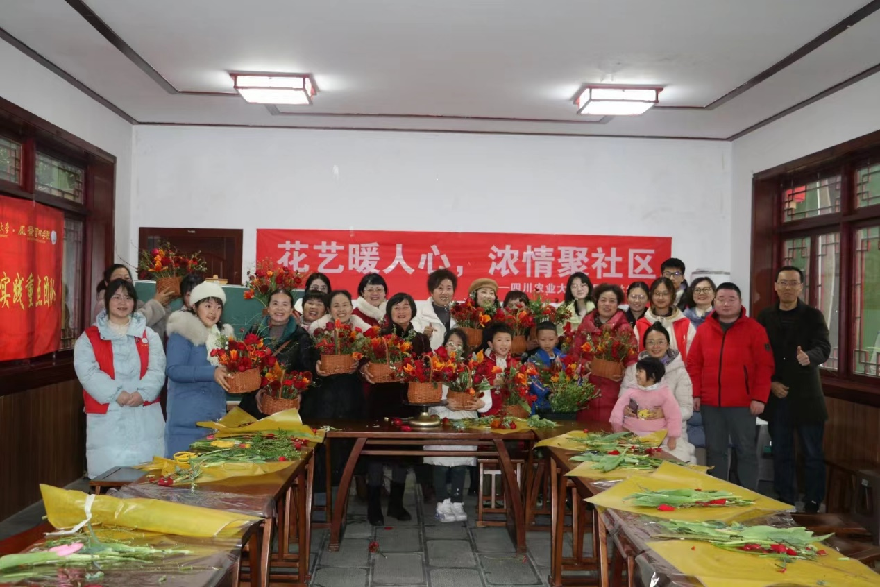 “很感谢川农风院和黄石社区的老师、工作者们能为我们提供这样一次丰富多彩的插花经验,我觉得插花非常有意思,我们不仅学习了怎样把鲜花插的好看,还了解了各种花的寓意内涵,看到最后我的花艺作品,我都难以置信这是我完成的!”70多岁的社区民众黄奶奶如是说道。