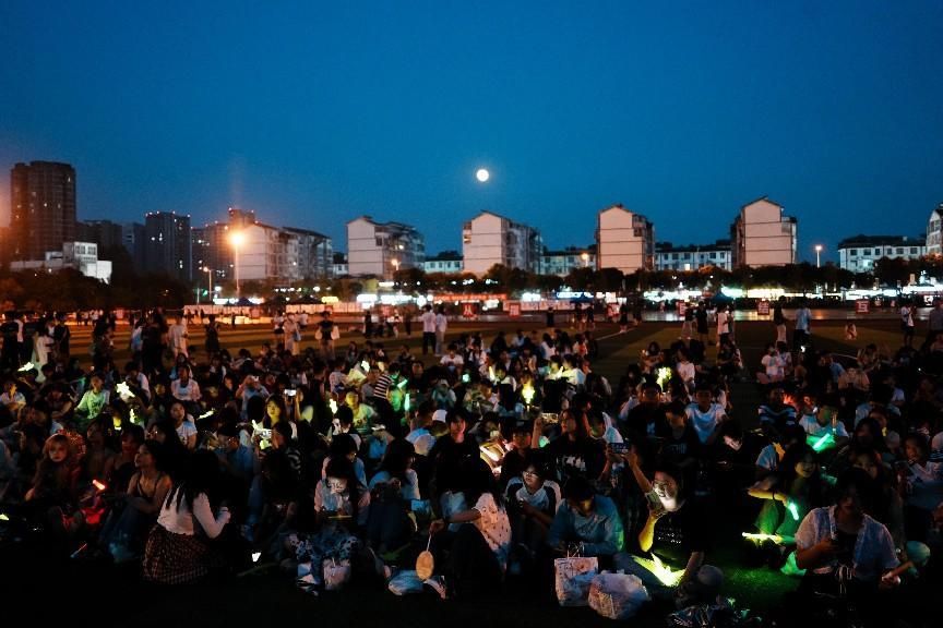 晚会现场,在准备阶段同学们可以通过在设点处签名和转发朋友圈的方式领取荧光棒和小零食,为晚会预热。七点三十分,一年中最皎洁的月亮如约升起,月光如流水般倾洒在川农的操场上,中秋晚会正式开始。充斥着感染力的歌声冲淡了观众们心中的思念,同学们听着耳边的悦耳歌声,轻轻挥舞着荧光棒,打着节拍。舞台上,表演者舞步翩跹,充满活力和生机,一曲终了,同学们均爆发出热烈的欢呼与喝彩声,晚会现场气氛极为热烈。