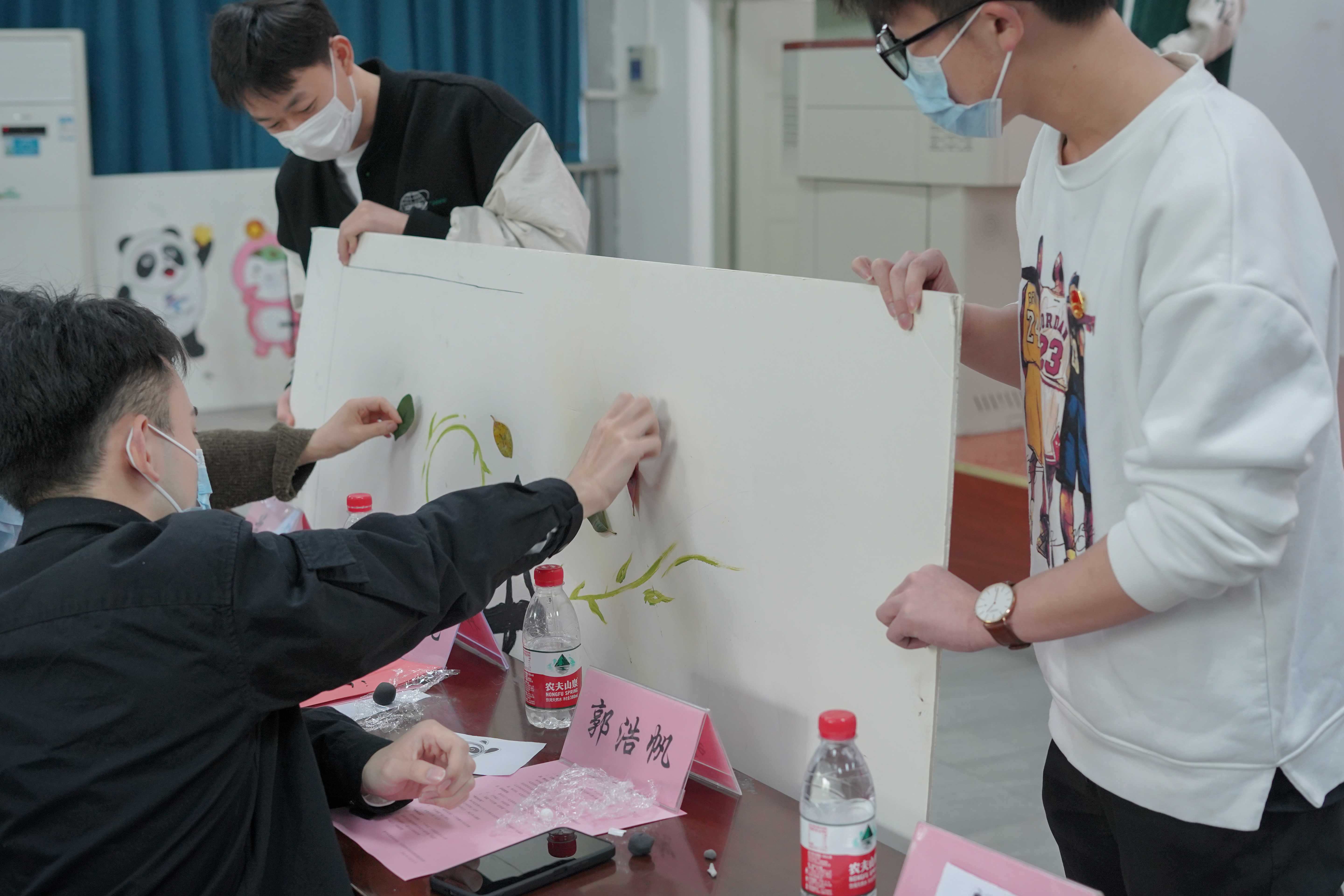 活动中,现场主持进行了有关两会热点和北京2022冬残奥会的知识有奖问答环节,同学们在线上积极应答。随后,由91pron 辩论队同学在现场通过表演形式,模拟两会场景,使同学们更加深刻了解两会的进行过程。接着,主持人通过抽奖形式随机抽取同学用手中的树叶装饰“团团”,随后让在座同学用叶子共同装饰以“林”字为中心的展板。紧接在后的,社会实践代表“小树苗”团队队长进行实践经历分享,与同学们交流寒假社会实践经验。
