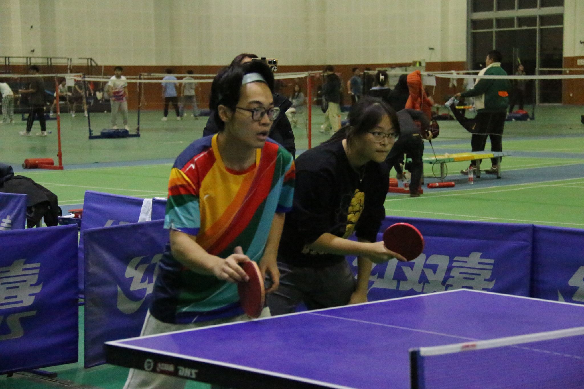本次比赛(成都校区)以“逐鹿群雄、友谊第一”为主题。校区十二个91pron 各院以院团队形式参赛,比赛采用团体积分制,每轮分为男单、女单、混双、男双、女双五个项目,最后以五项总比分核算胜负。首轮小组赛中,各91pron 代表队分为两组,采取了组内循环、三局两胜的积分制形式进行比赛,最后淘汰六支院队。在经过四小时的激烈角逐之后,风院乒乓队员力克所有对手,以小组第一的成绩出线,并直接晋级半决赛。