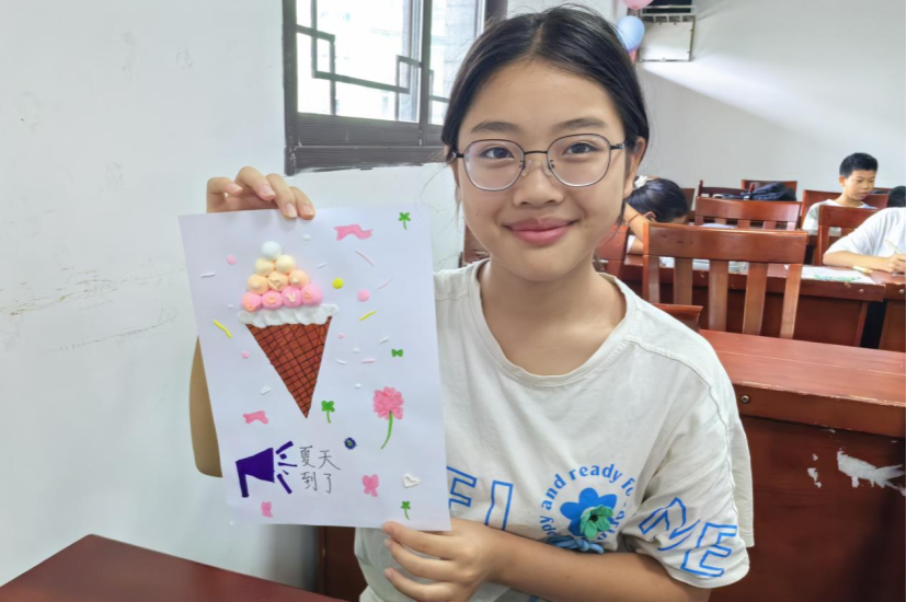 (图为夏令营同学展示黏土手工课作品 陈思玉供图)