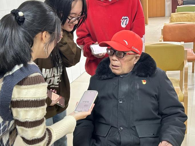 图为抗美援朝老战士向成员们讲述他们保家卫国的决心 刁可盈 供图