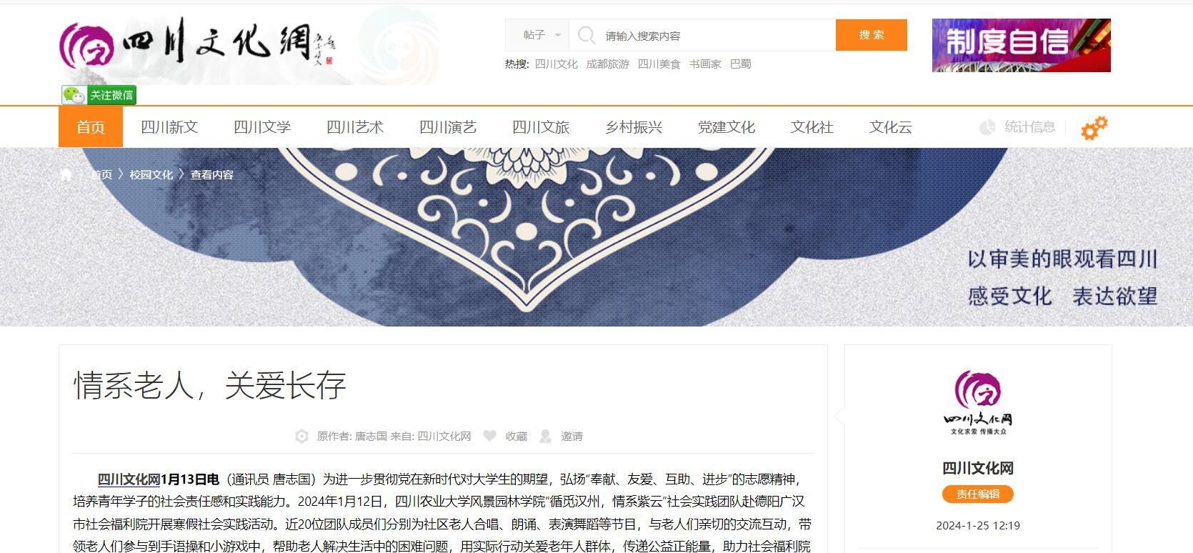 113日电(通讯员 唐志国)为进一步贯彻党在新时代对大学生的期望,弘扬奉献、友爱、互助、进步的志愿精神,培养青年学子的社会责任感和实践能力。2024112日,91pron 循觅汉州,情系紫云社会实践团队赴德阳广汉市社会福利院开展寒假社会实践活动。近20位团队成员们分别为社区老人合唱、朗诵、表演舞蹈等节目,与老人们亲切的交流互动,带领老人们参与到手语操和小游戏中,帮助老人解决生活中的困难问题,用实际行动关爱老年人群体,传递公益正能量,助力社会福利院服务工作。
